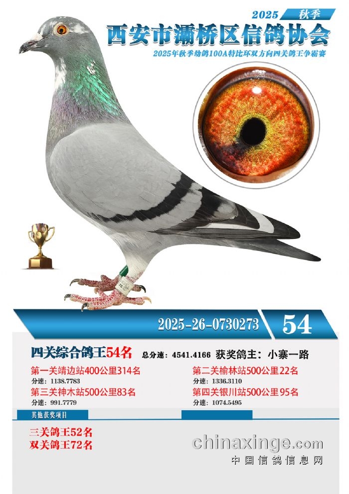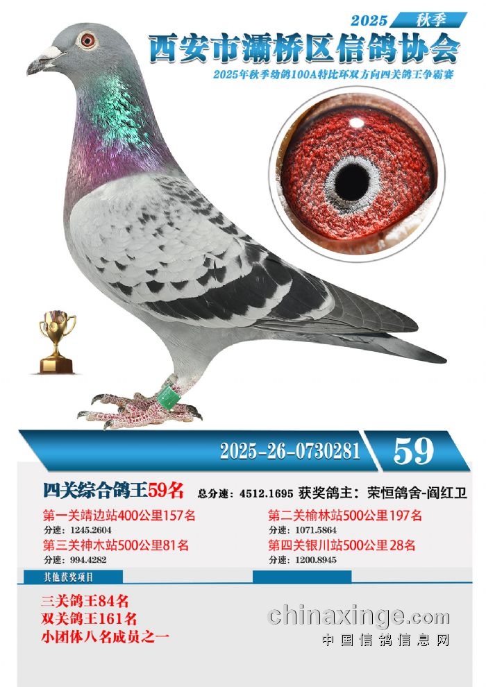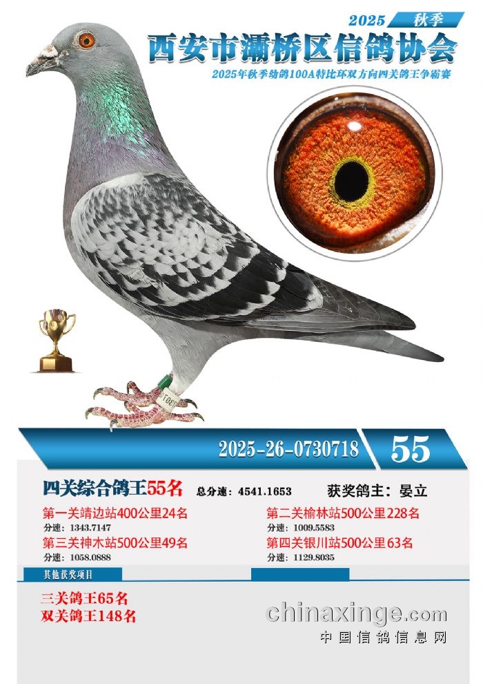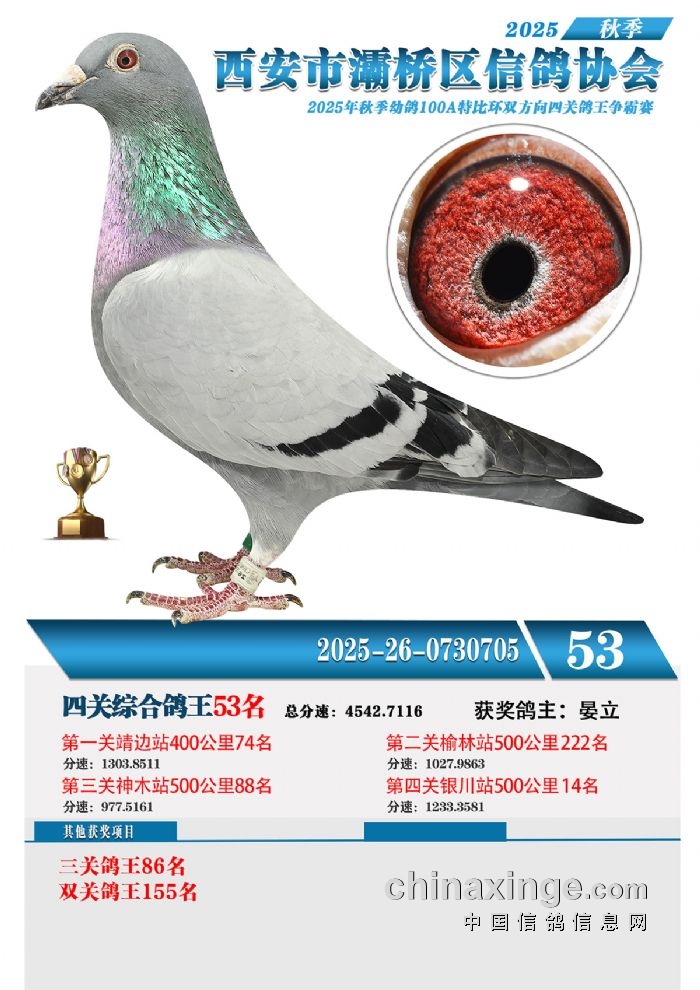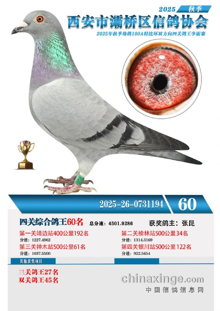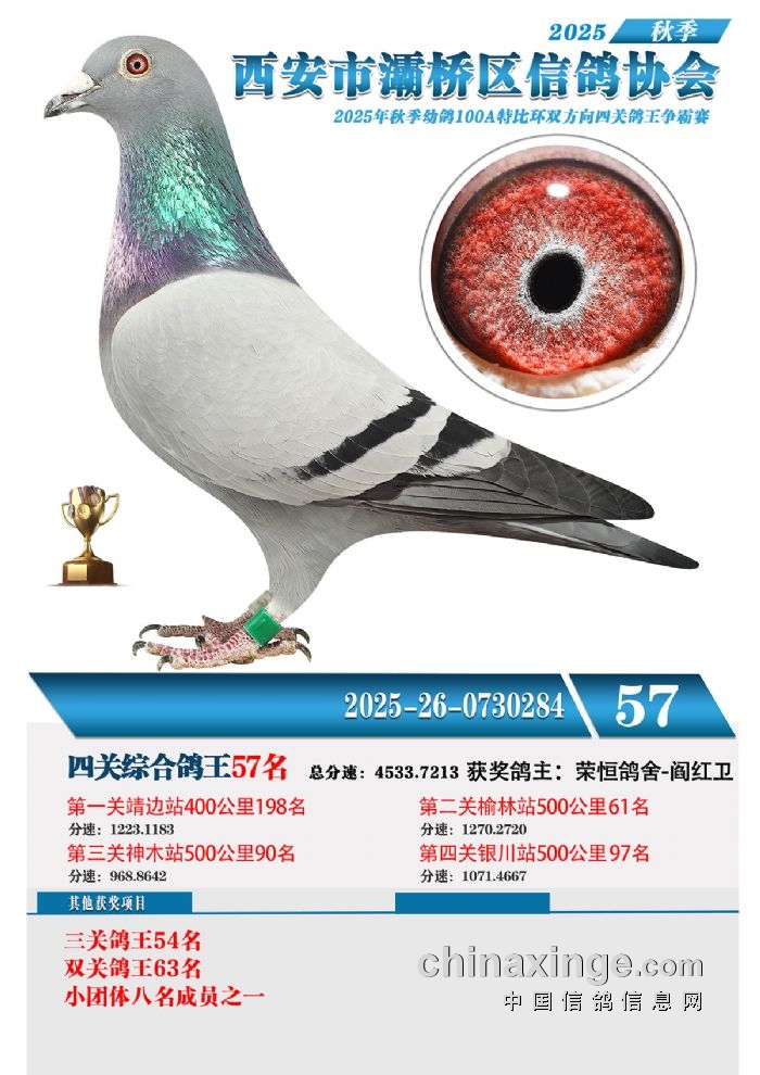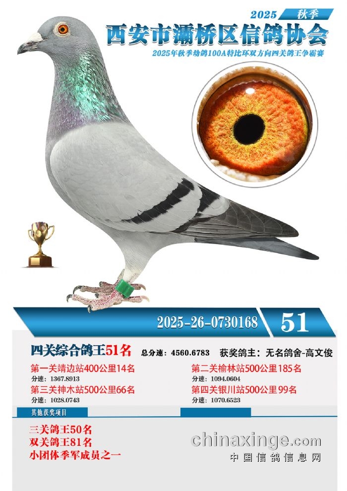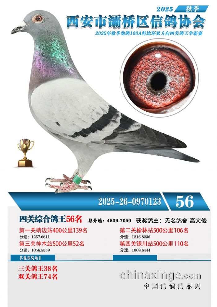 灞桥鸽会25年特比环获奖鸽展示51-60名