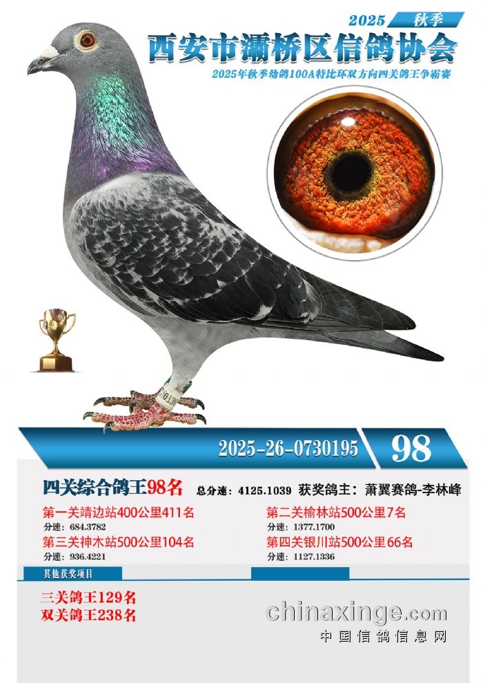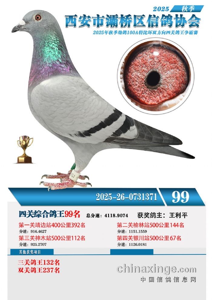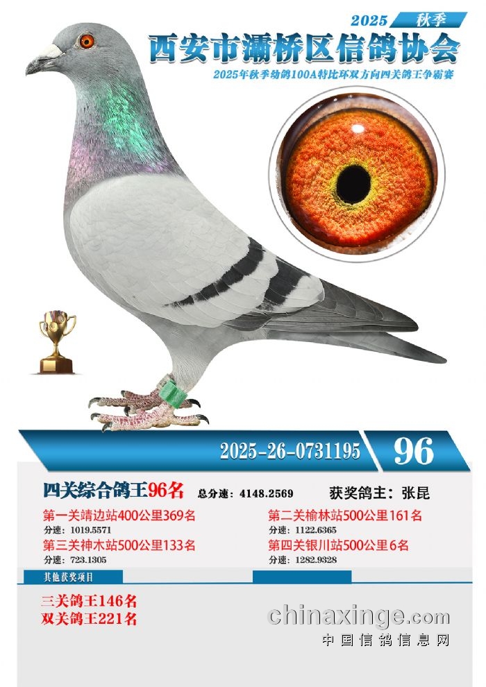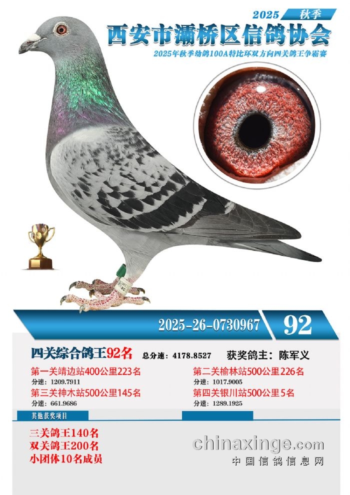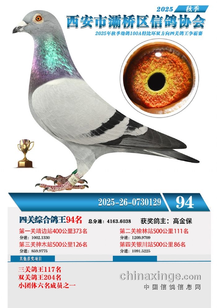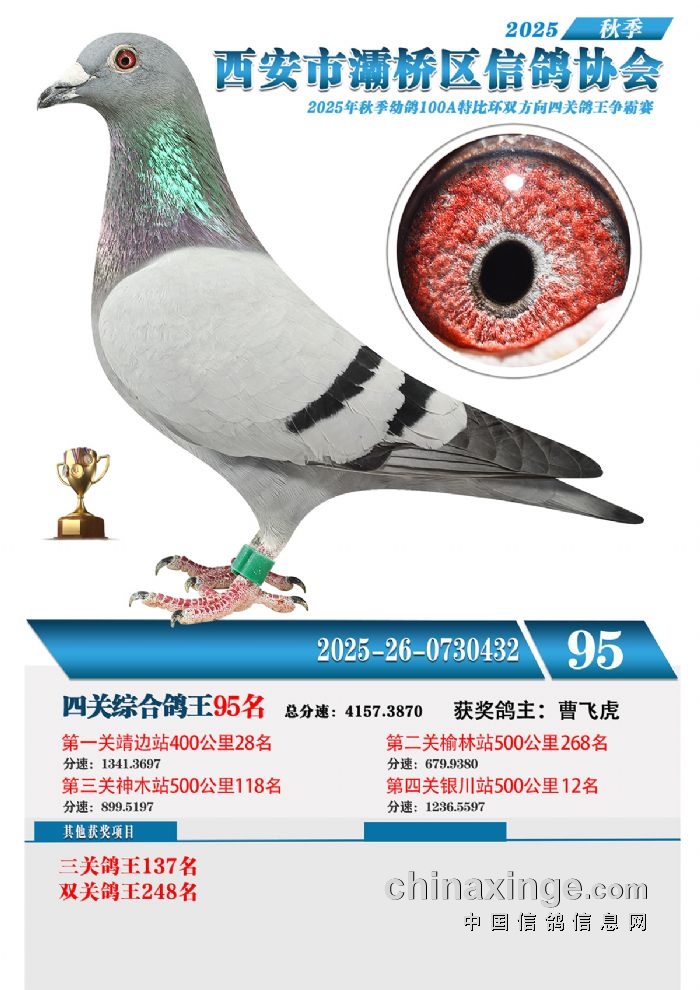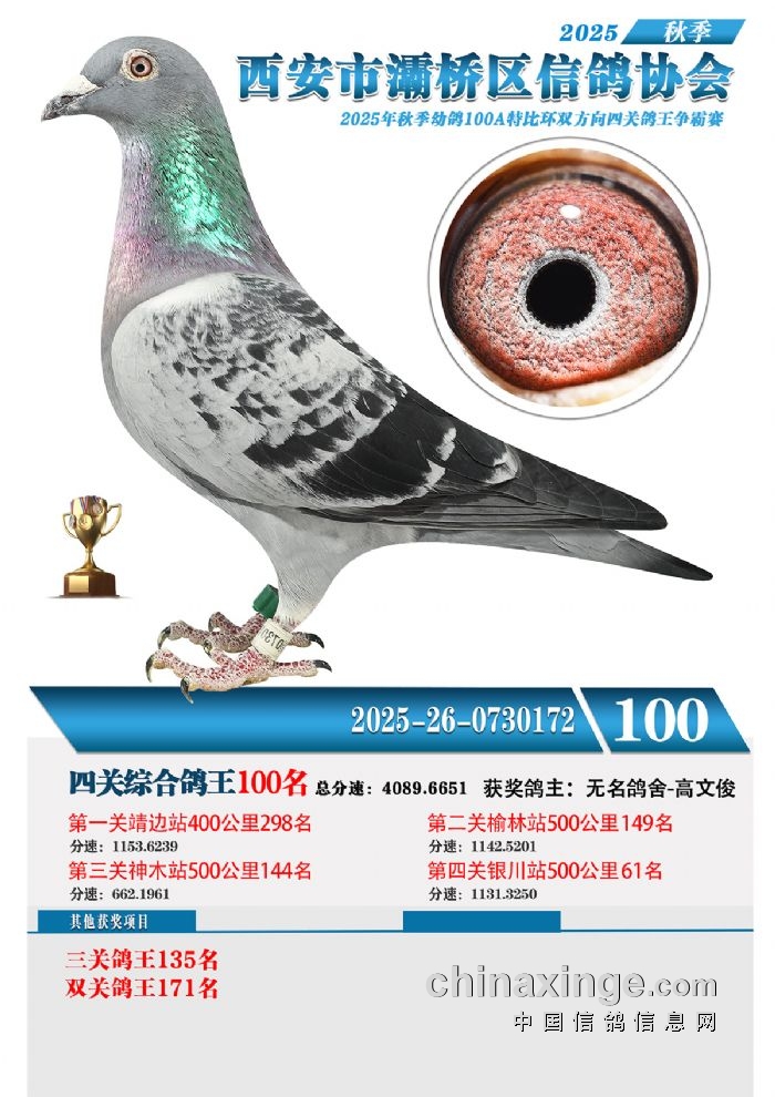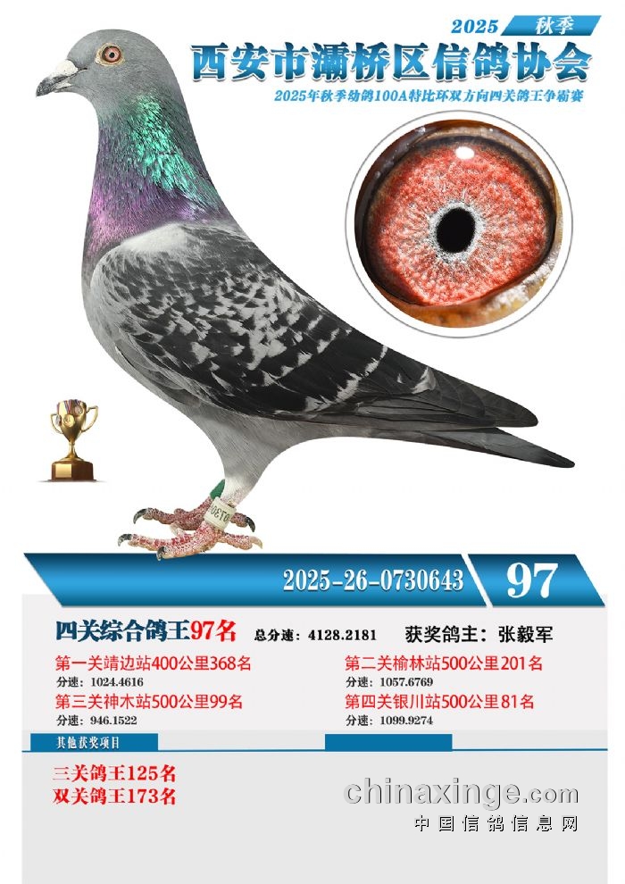 灞桥鸽会25年特比环获奖鸽展示91-100名