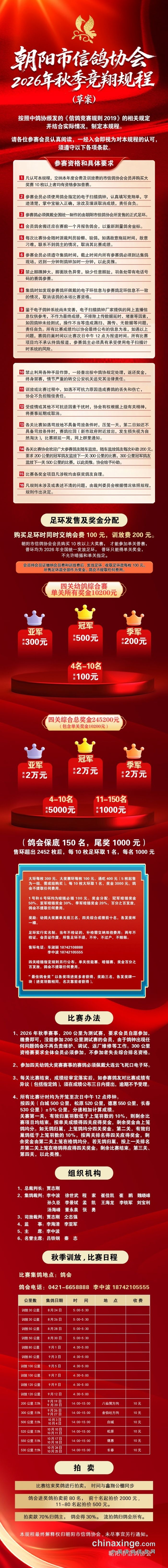 朝阳市信鸽协会2026年秋季竞翔规程(草案)