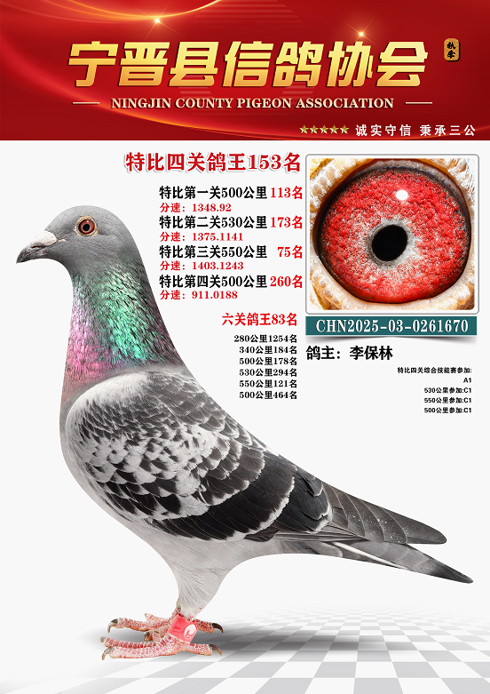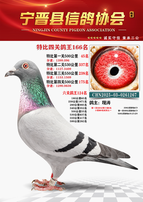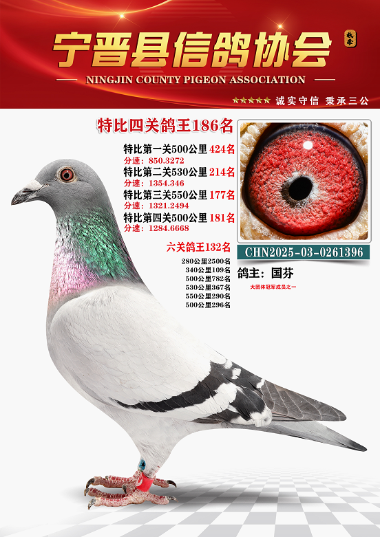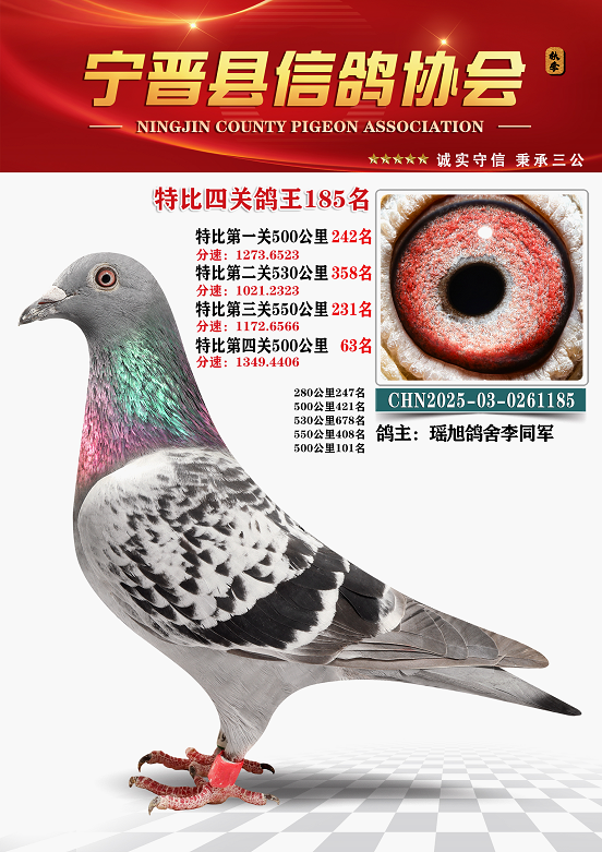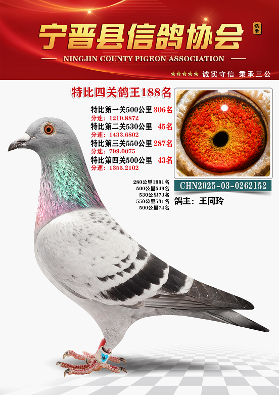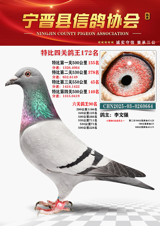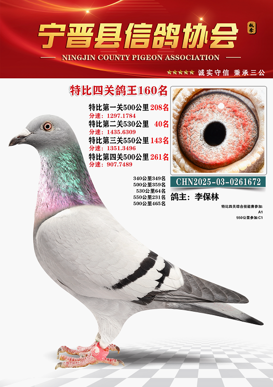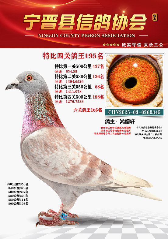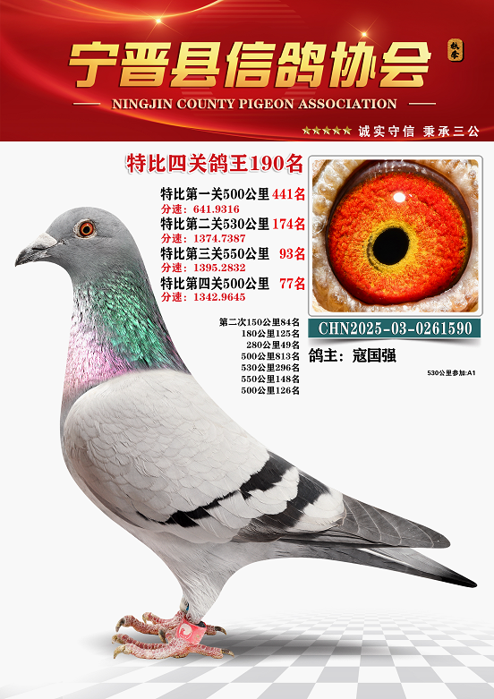 宁晋信鸽协会2025年秋季特比环四关鸽王151名—200名照片