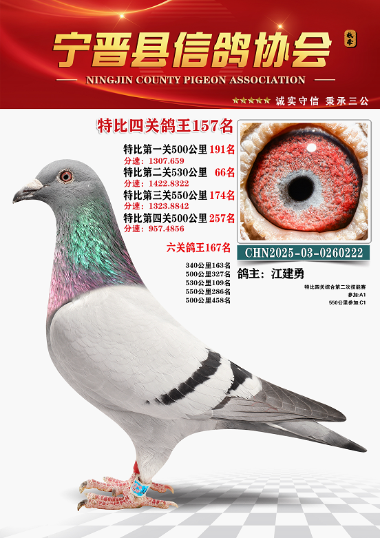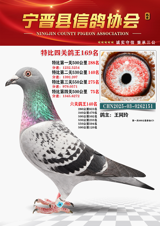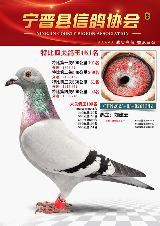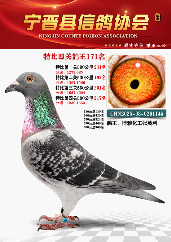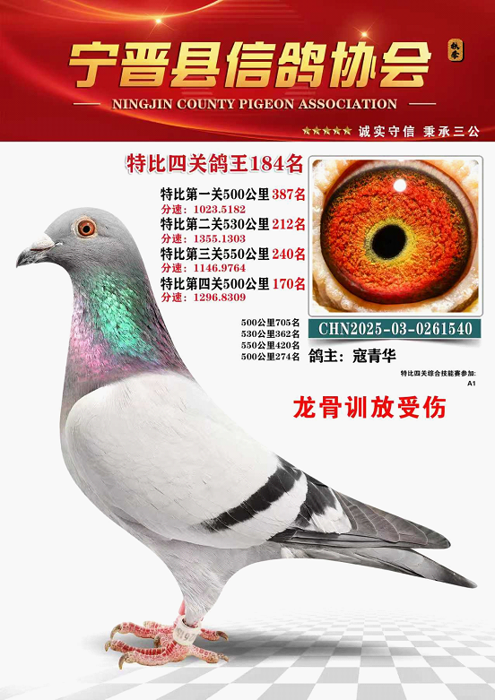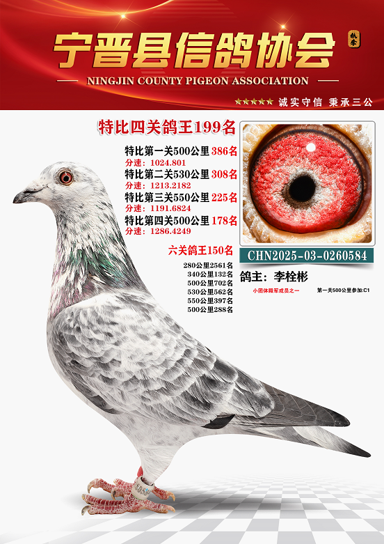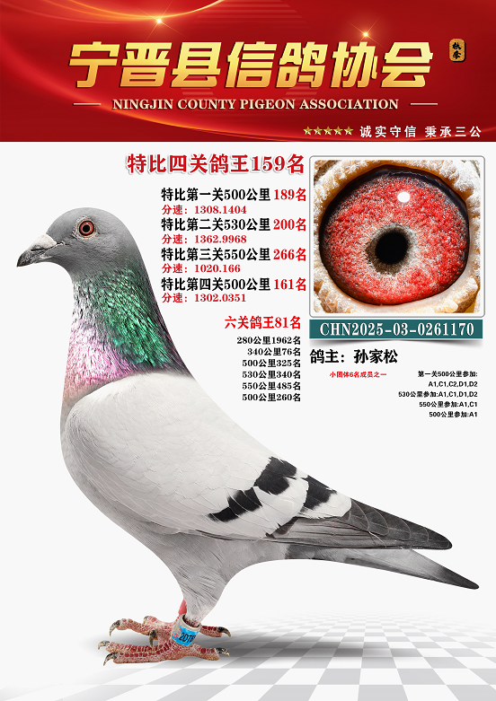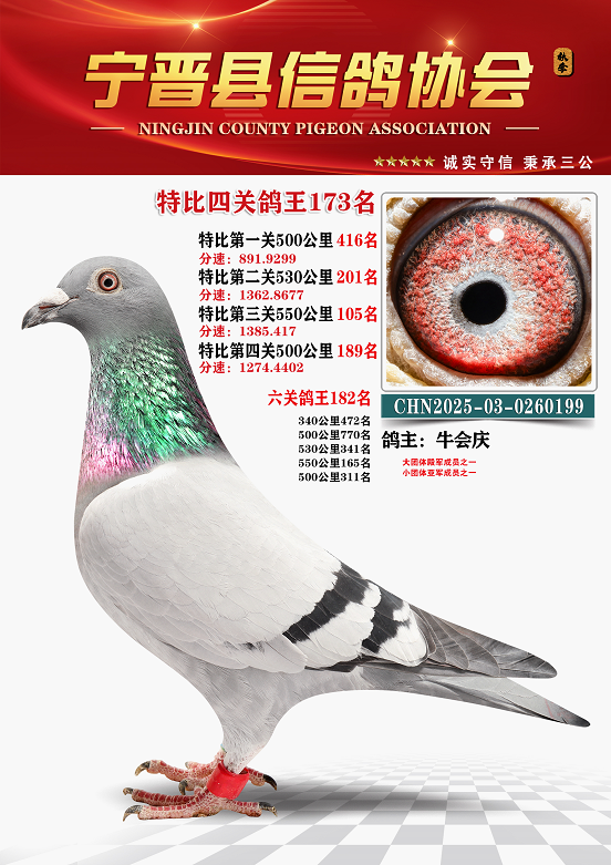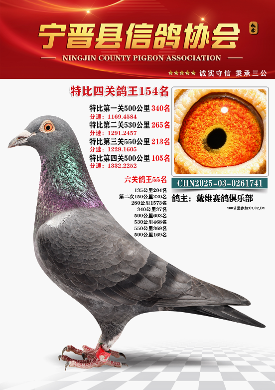 宁晋信鸽协会2025年秋季特比环四关鸽王151名—200名照片