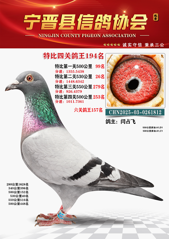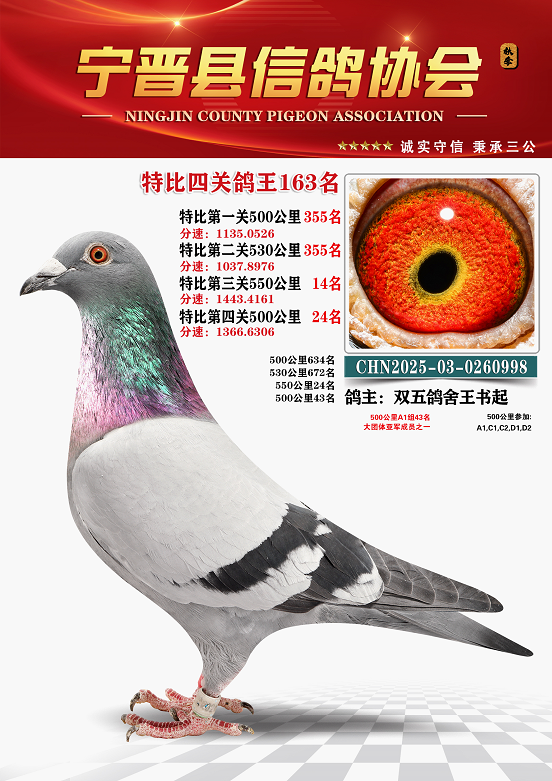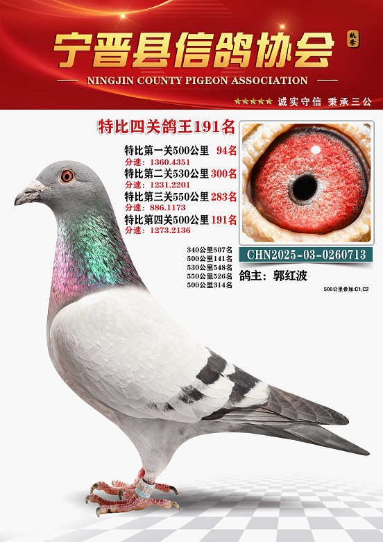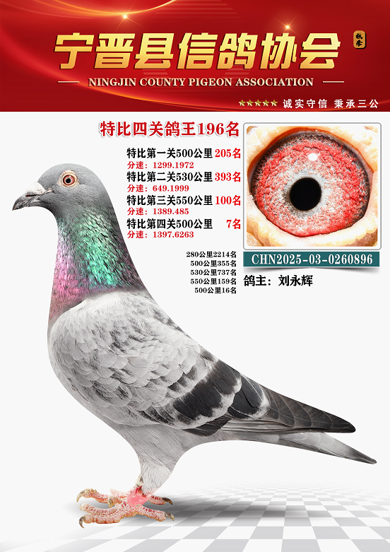 宁晋鸽会2025年秋季六关鸽王排名