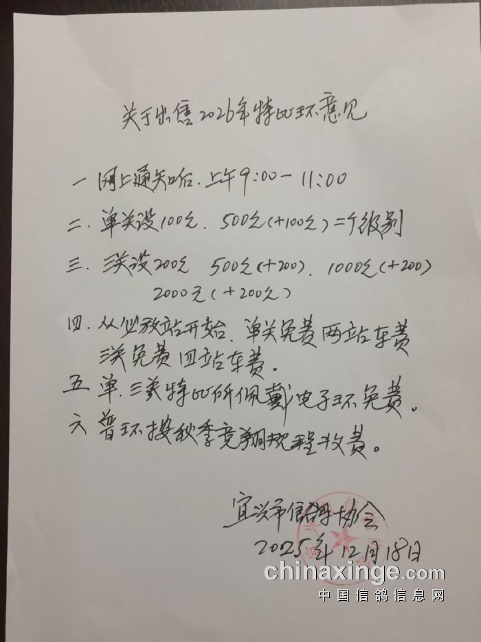 宜兴市信鸽协会2025年秋季第一关(大小特比及普环)蒙阴站比赛网址