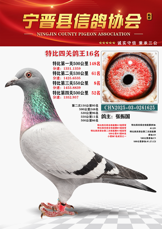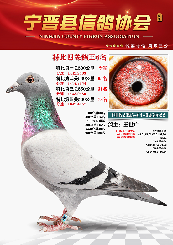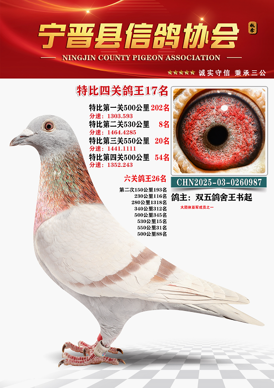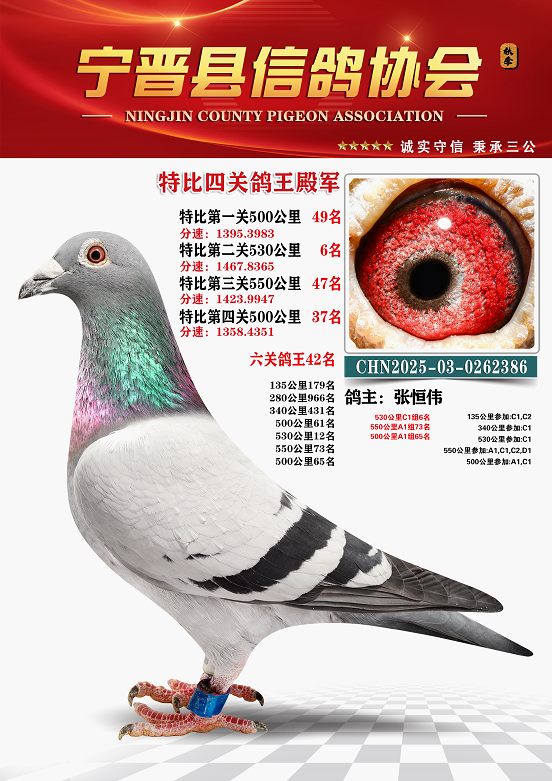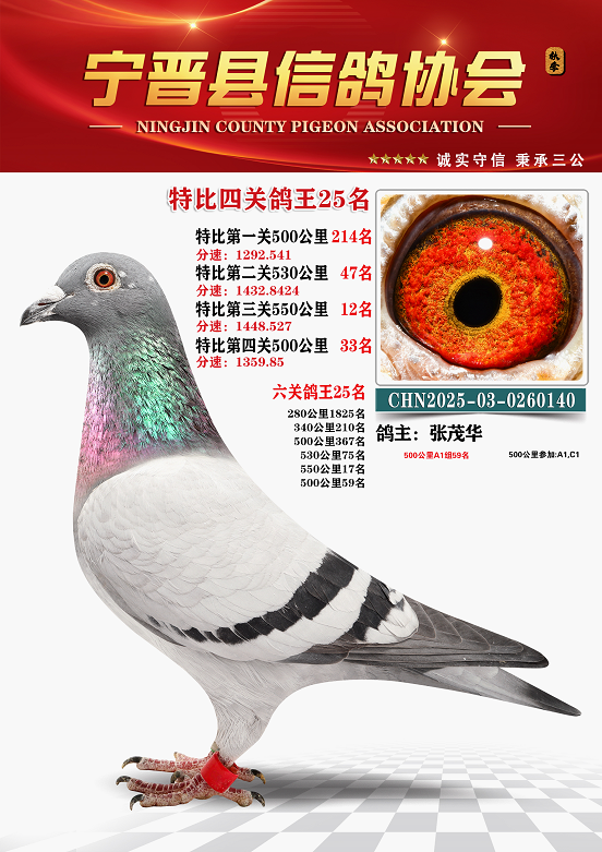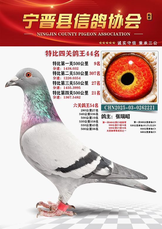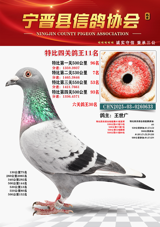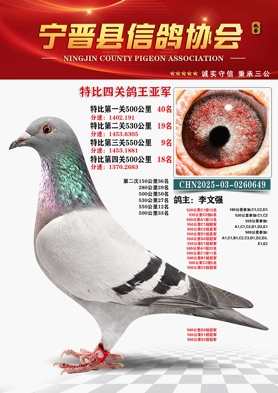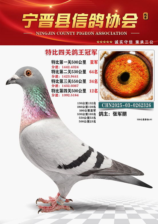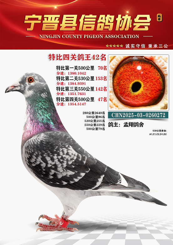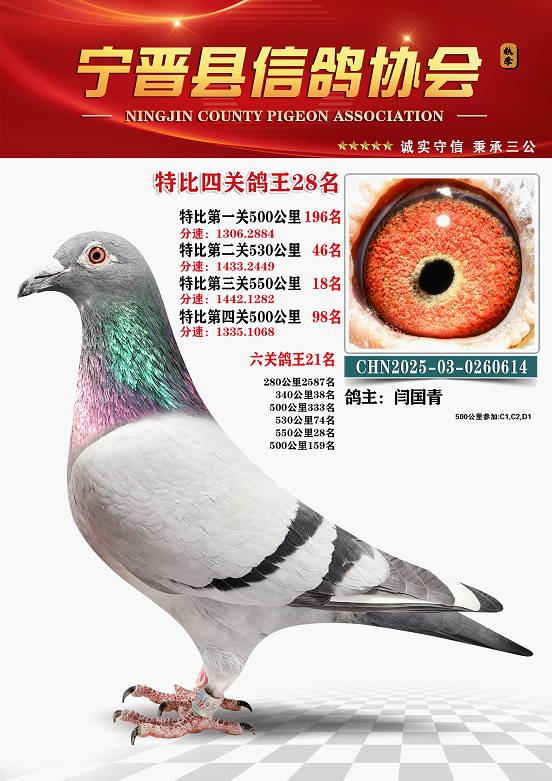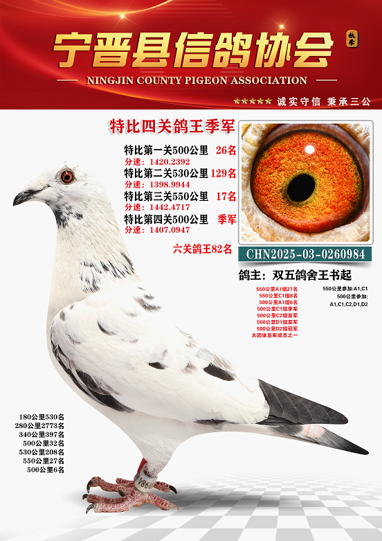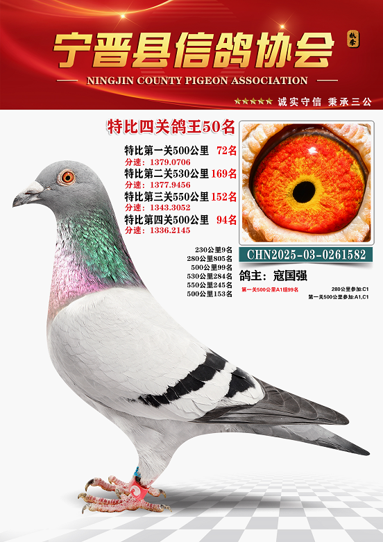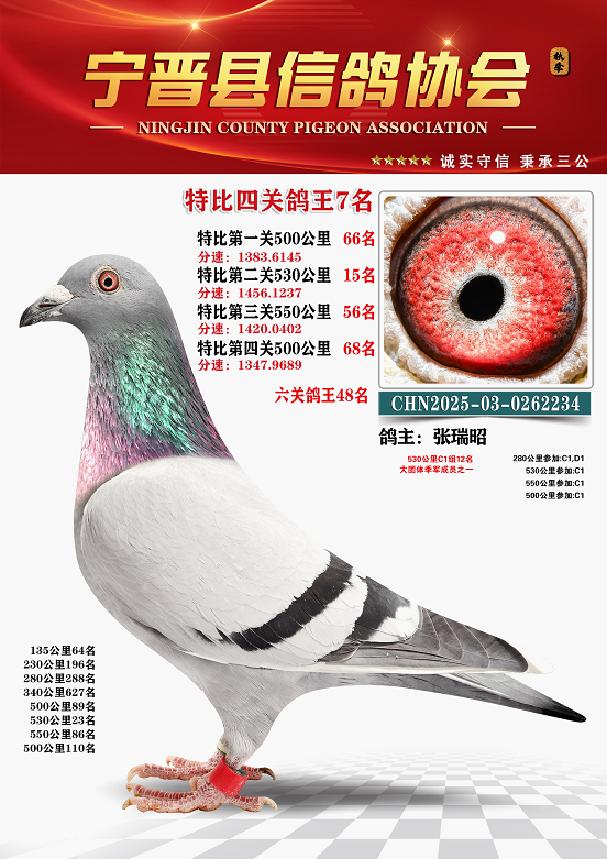 宁晋信鸽协会2025年秋季特比环四关鸽王冠军—50名照片