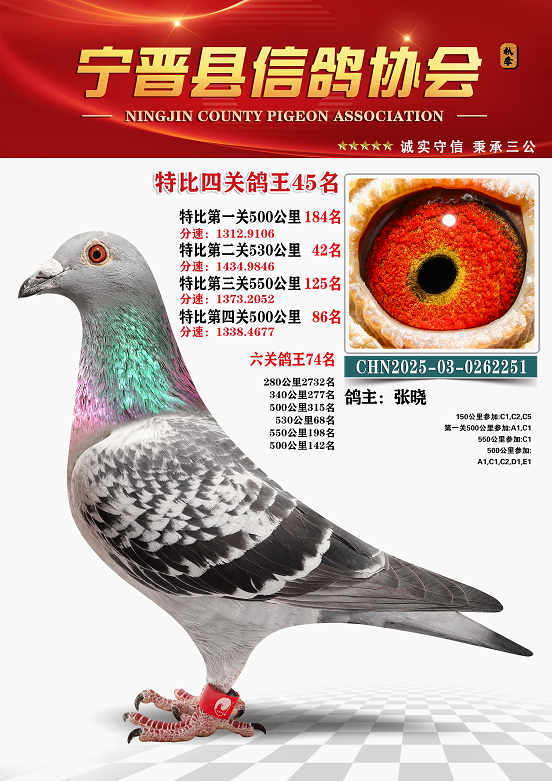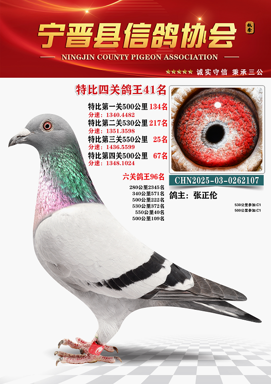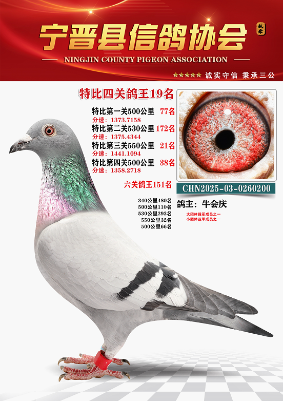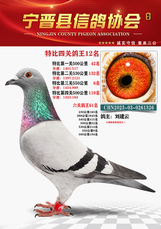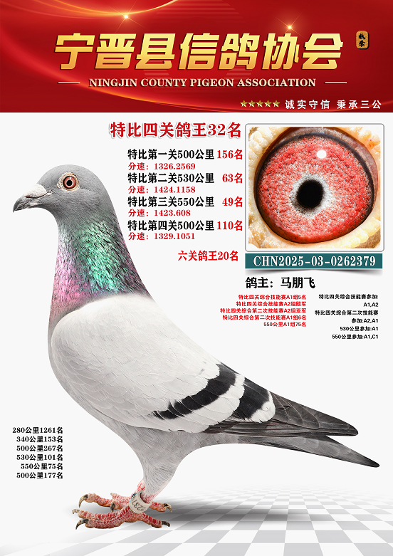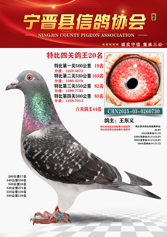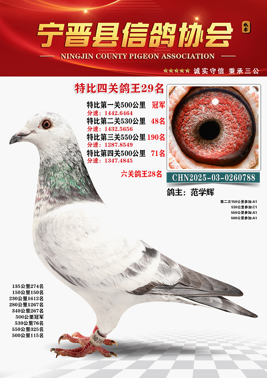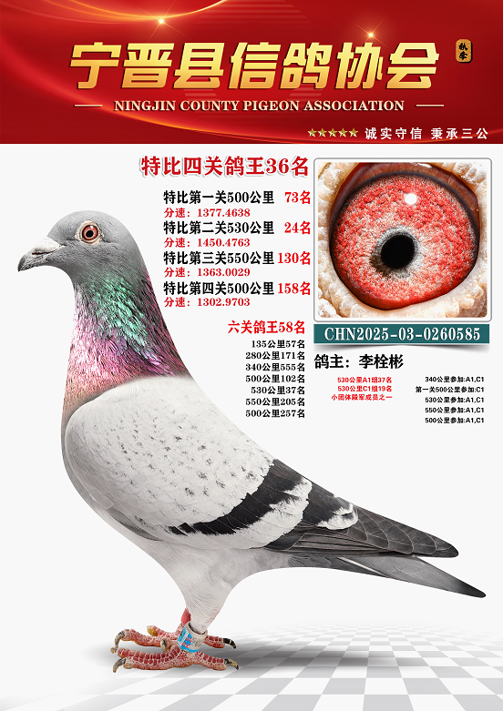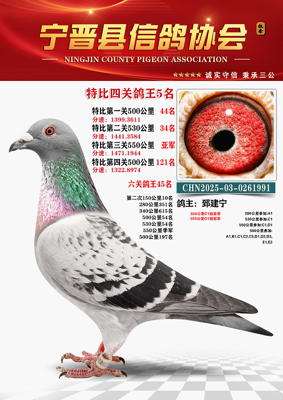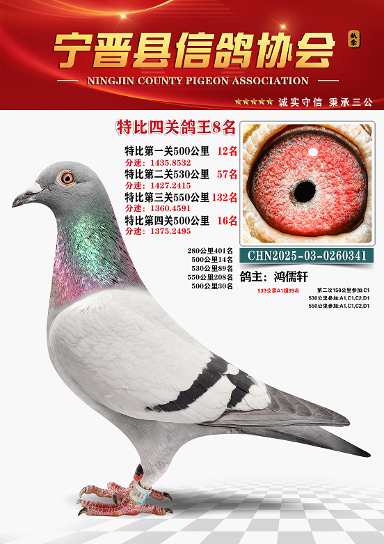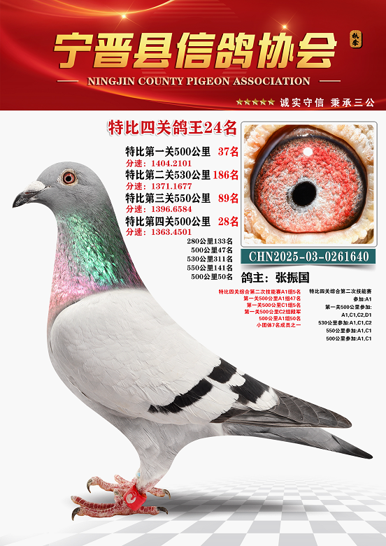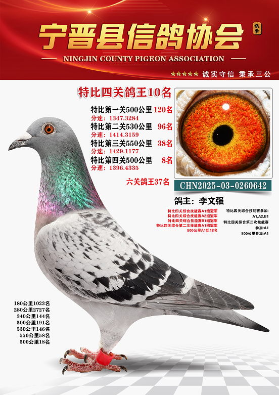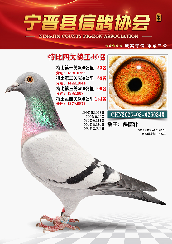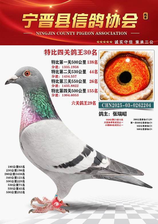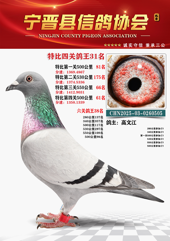 宁晋信鸽协会2025年秋季特比环四关鸽王冠军—50名照片