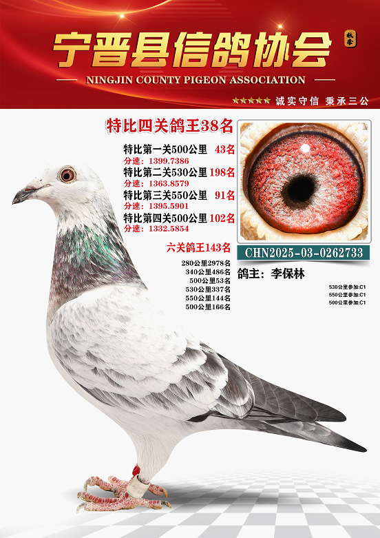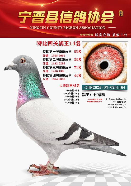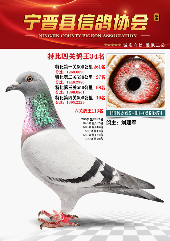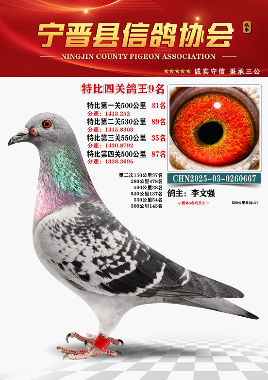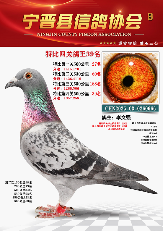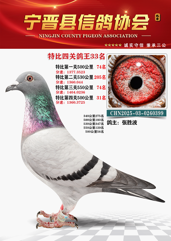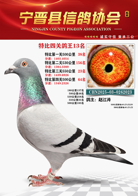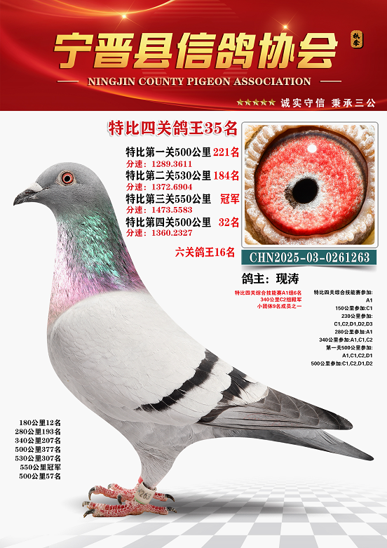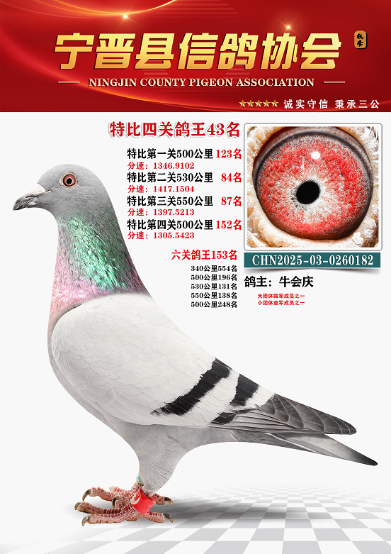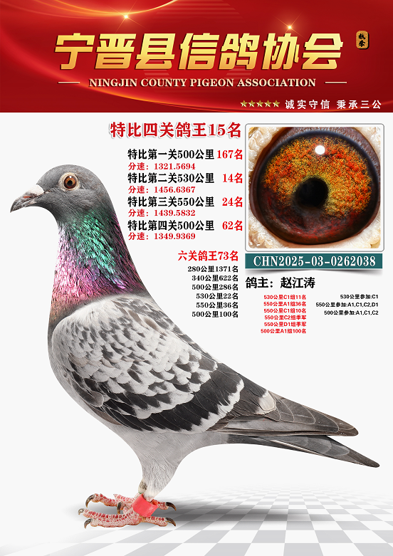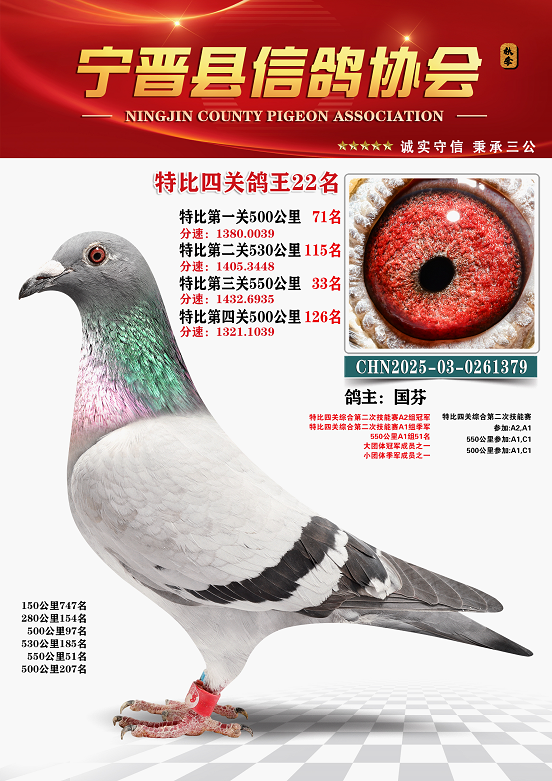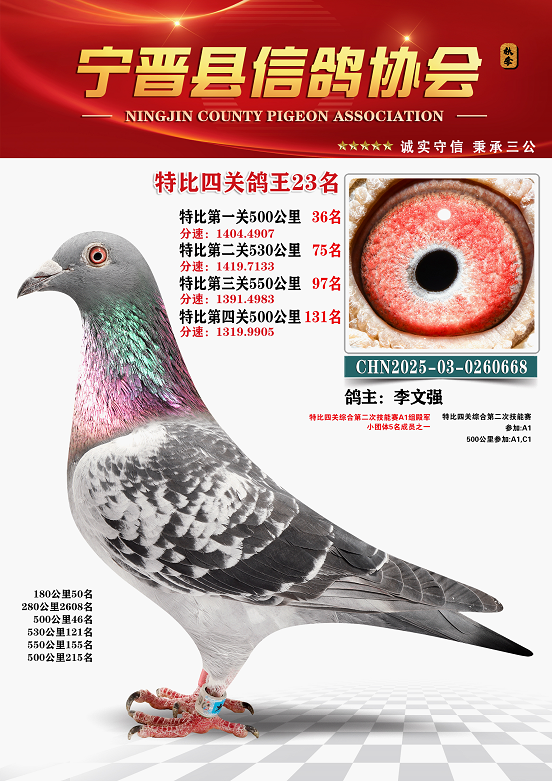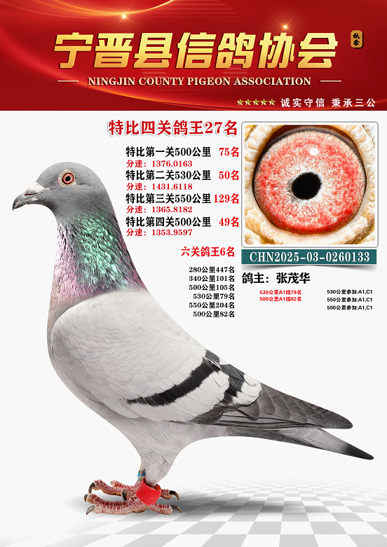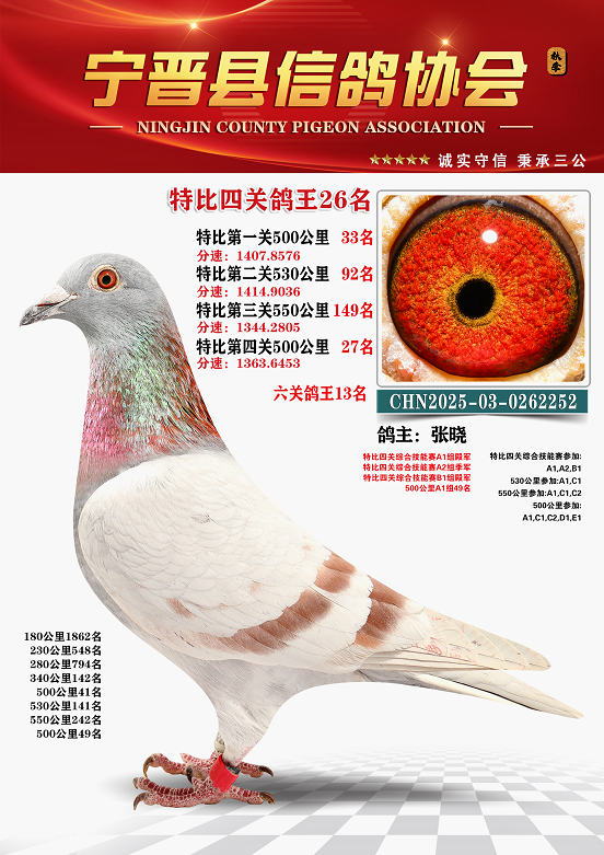 宁晋信鸽协会2025年秋季特比环四关鸽王冠军—50名照片
