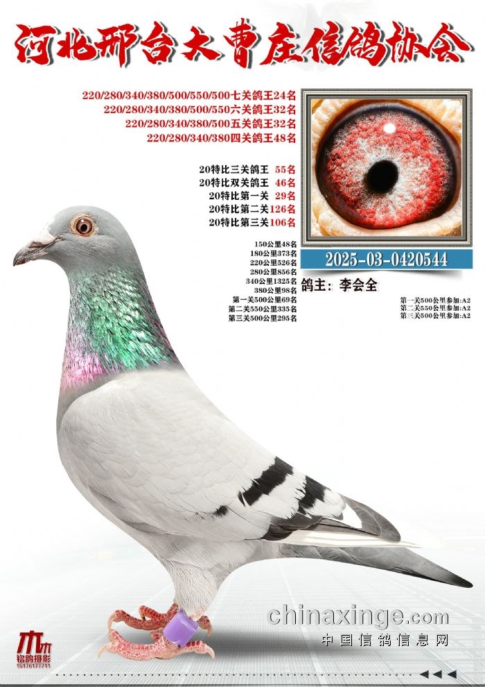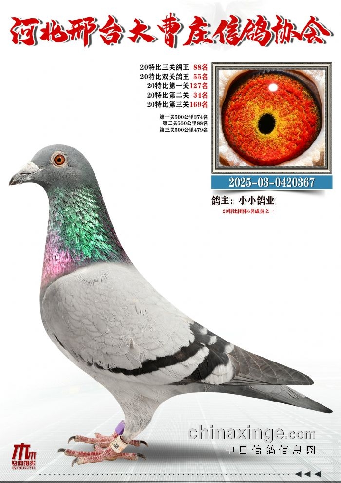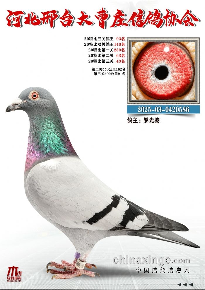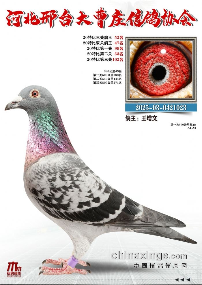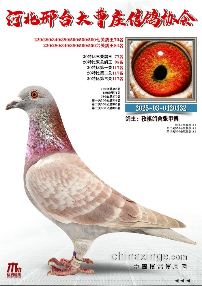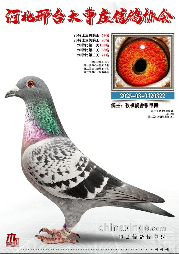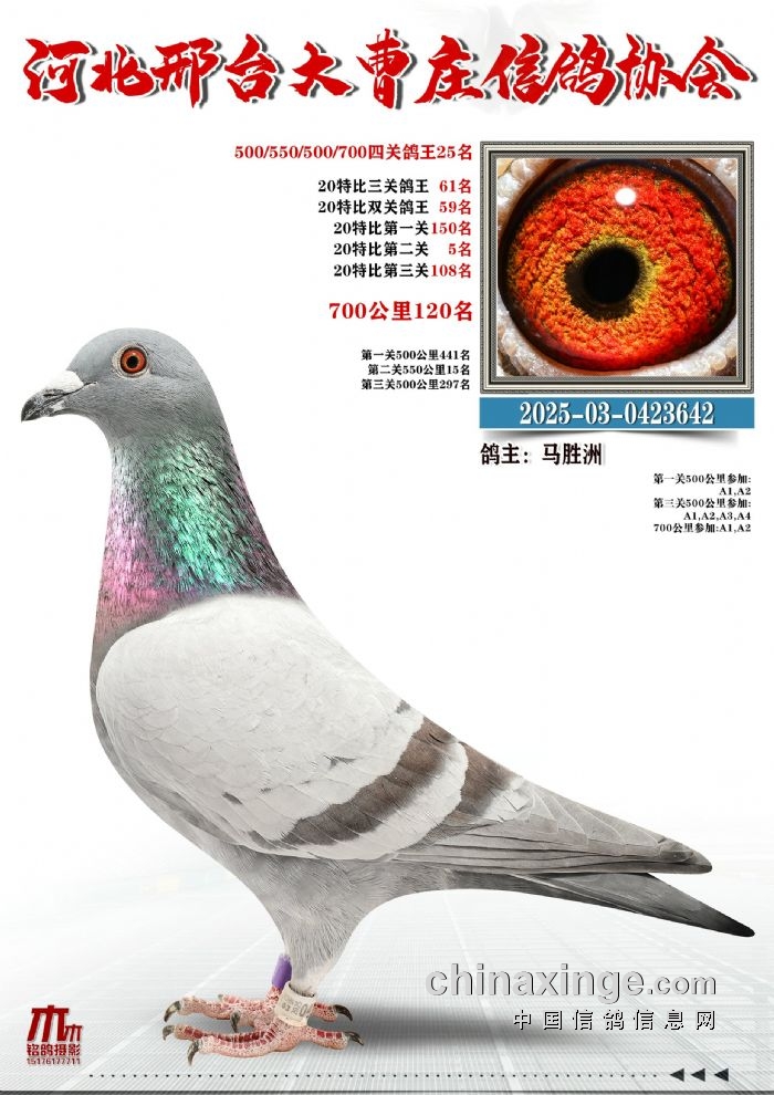 大曹庄鸽会25年秋500、550、500、700公里四关鸽王成绩