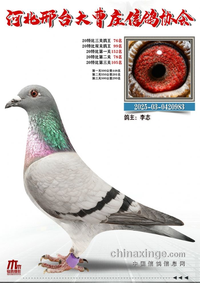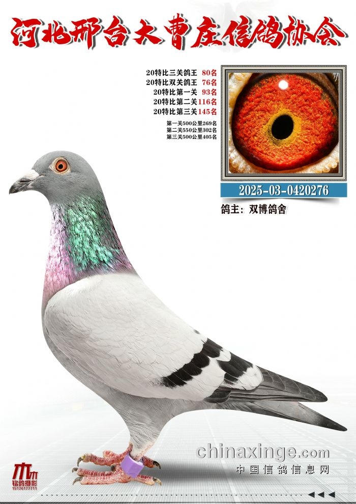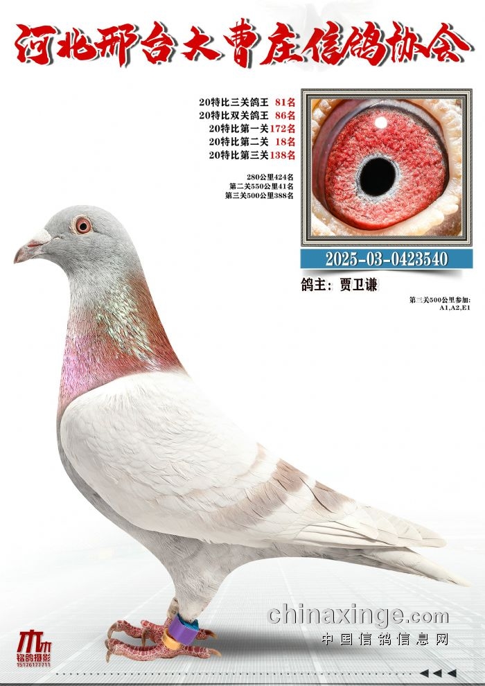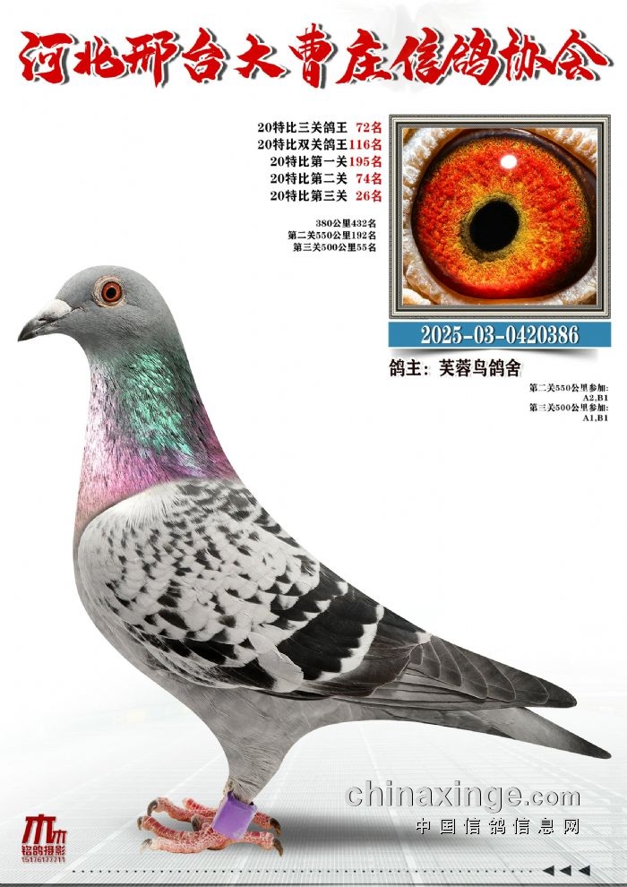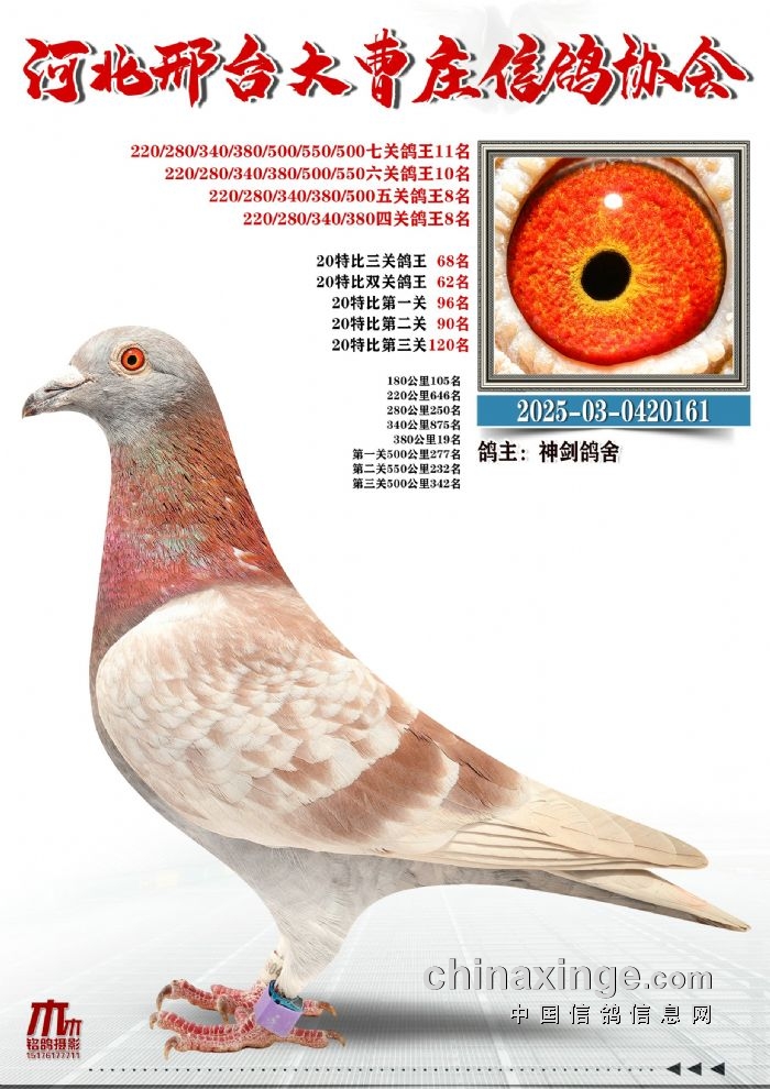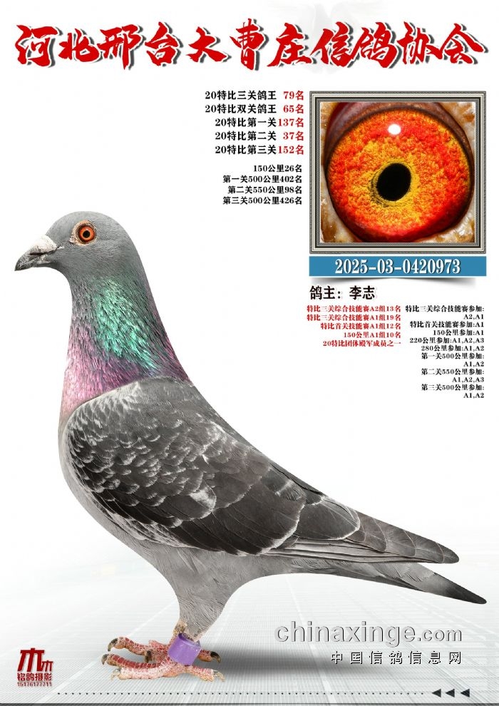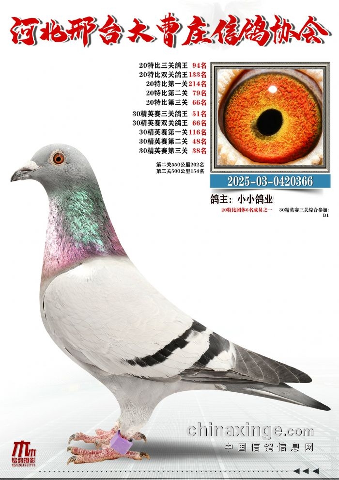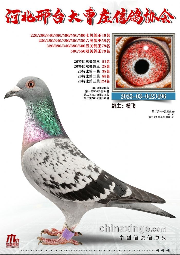 大曹庄鸽会25年秋500、550、500、700公里四关鸽王成绩