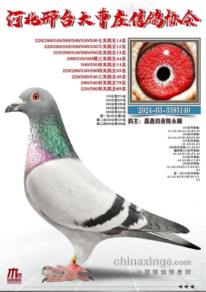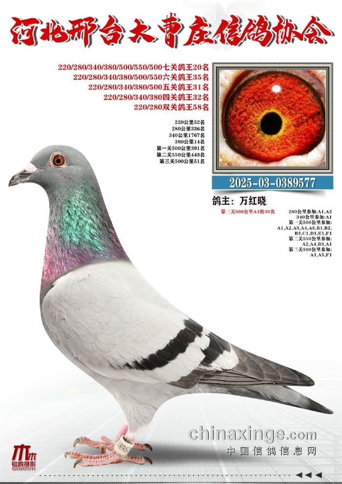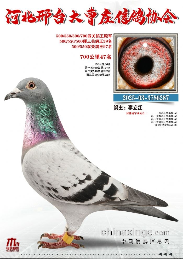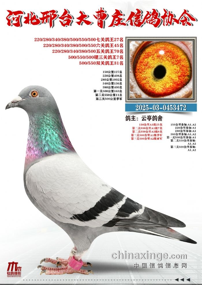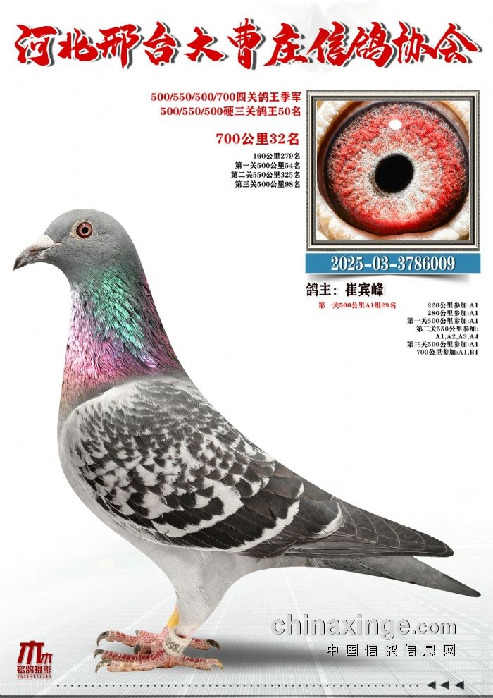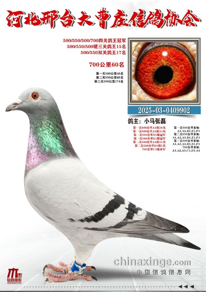大曹庄鸽会25年秋500、550、500、700公里四关鸽王成绩