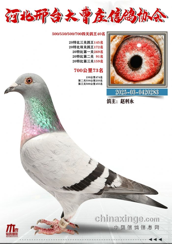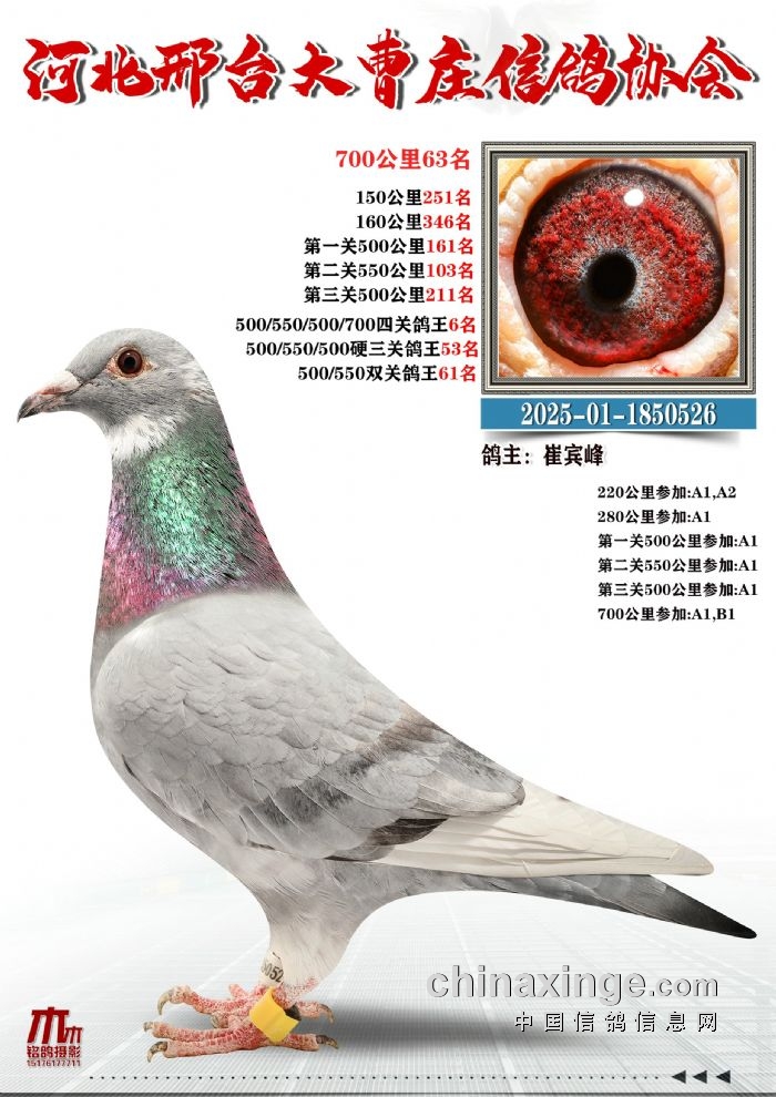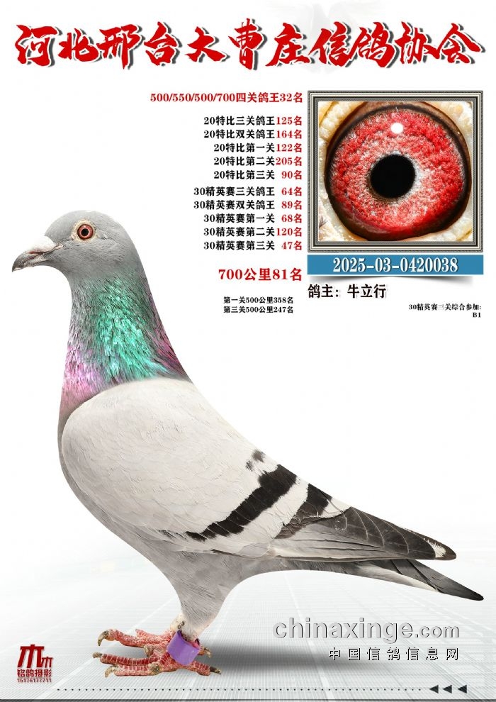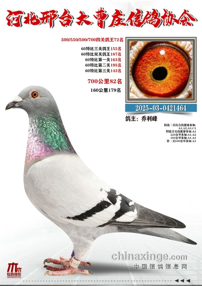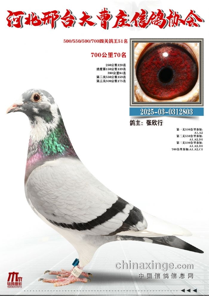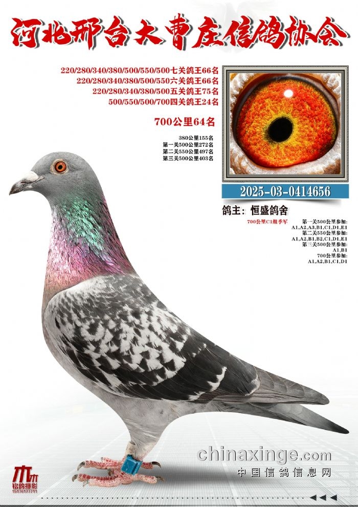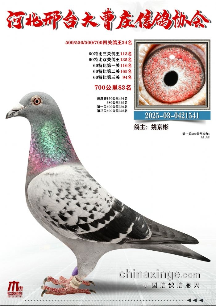 大曹庄鸽会25年秋500、550、500、700公里四关鸽王成绩