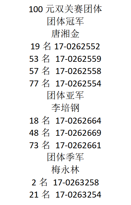 黄石市信鸽协会2025年秋季100元双关赛综合比赛成绩(二榜)