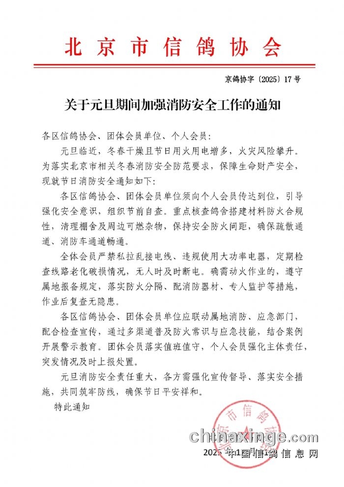 转发北京市信鸽协会元旦期间加强消防安全工作通知