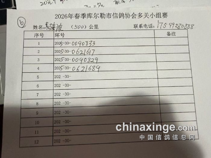 库尔勒市信鸽协会 2026年春季三关中距离特比卡赛规程