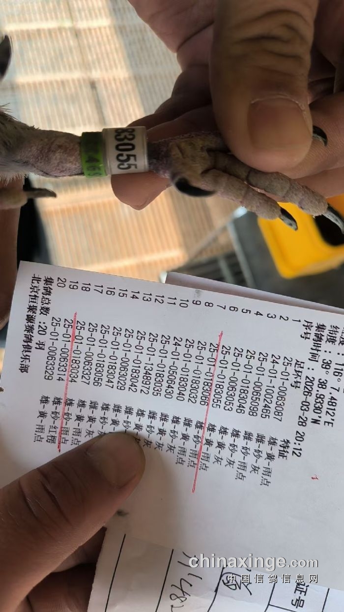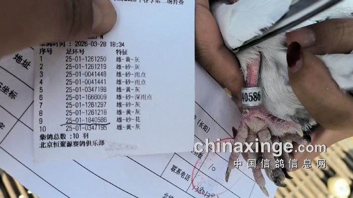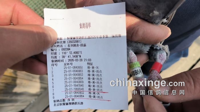 房山区信鸽协会2026年春季第二场海源杯比赛集鸽羽数