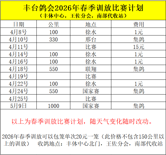 丰台鸽会训放通知