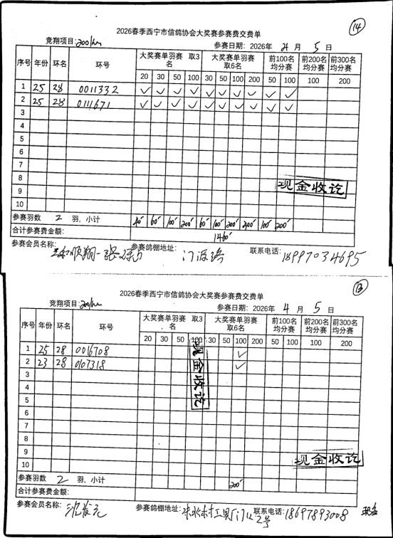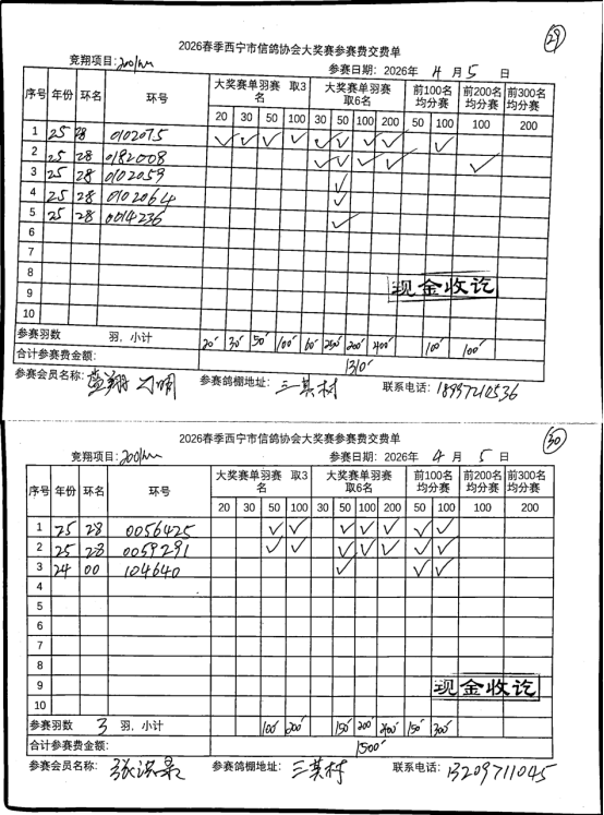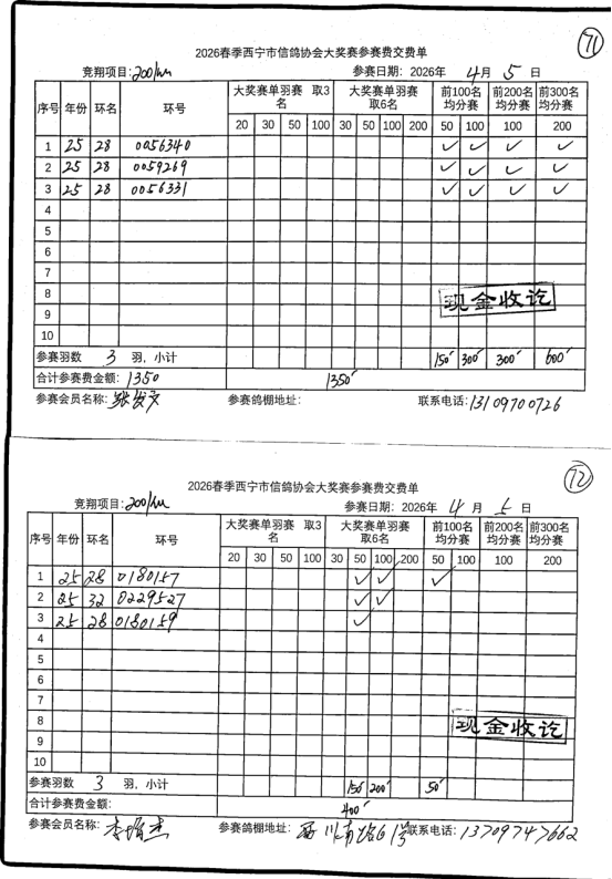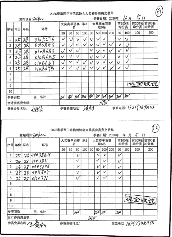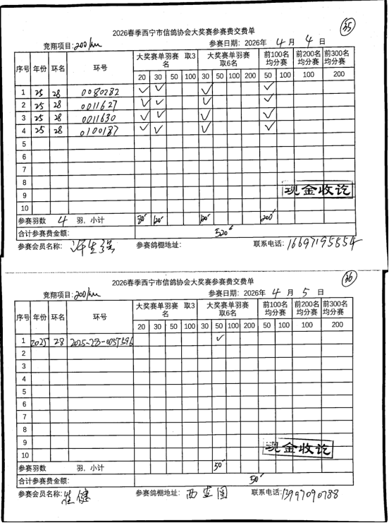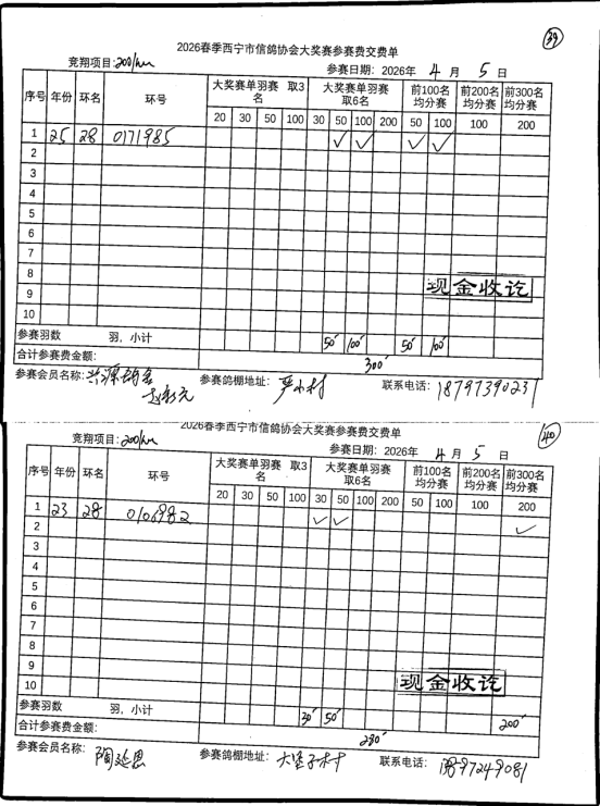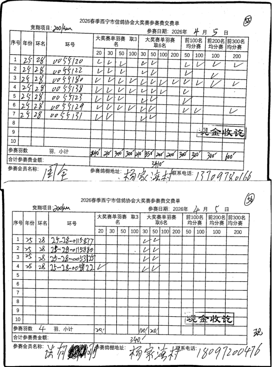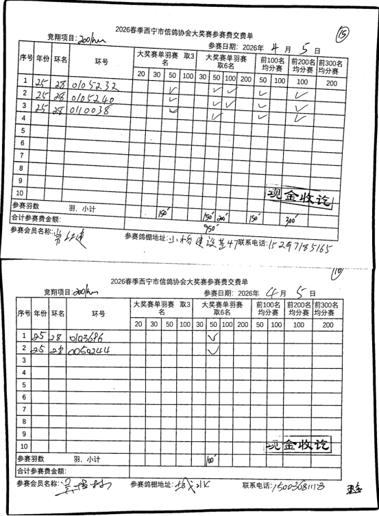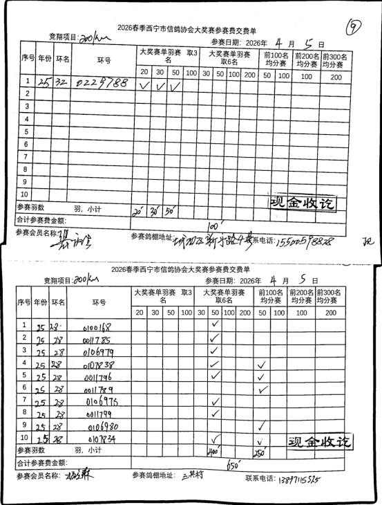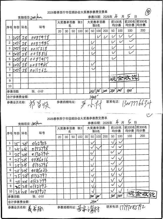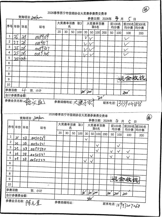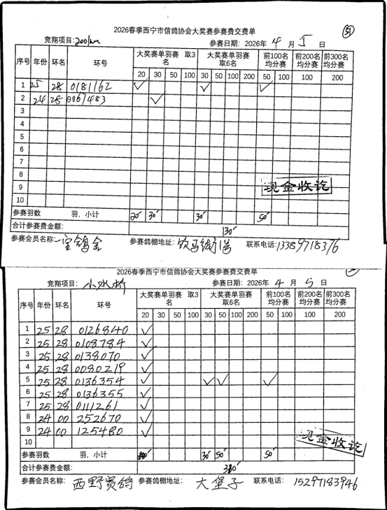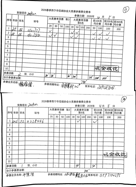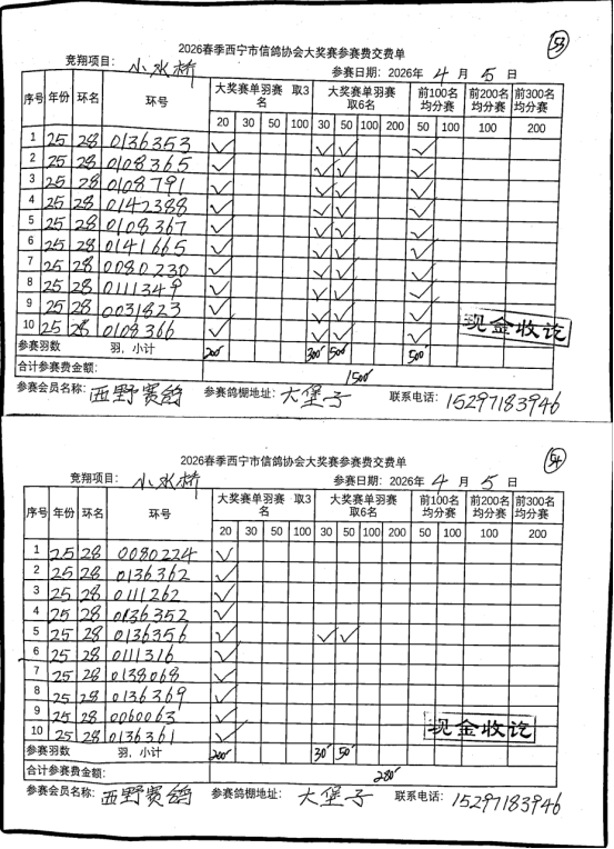 2026年春季小水桥大奖赛申报四关鸽王原始底单