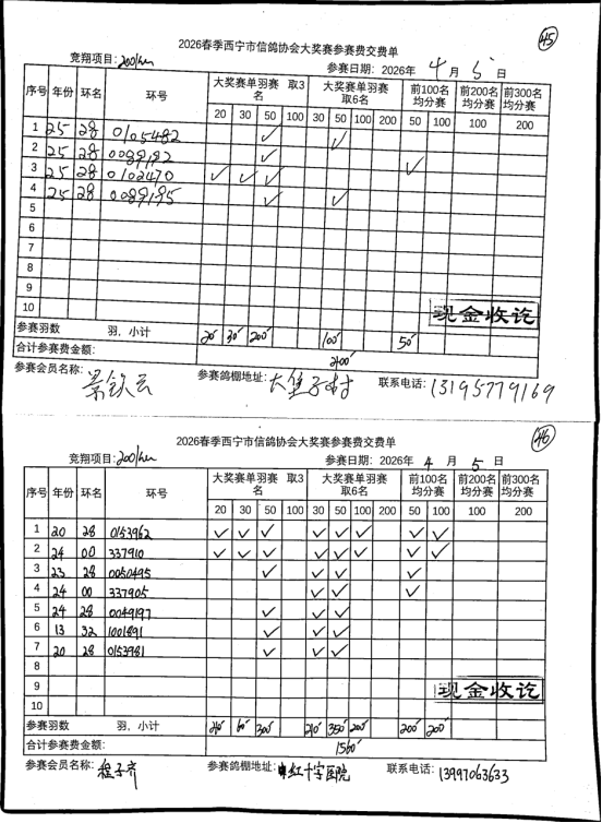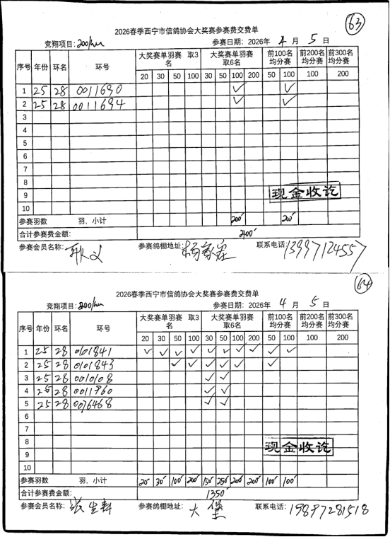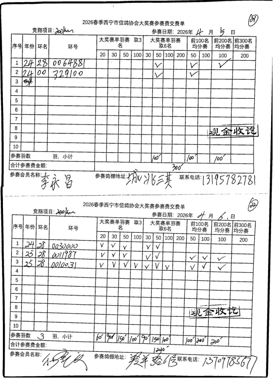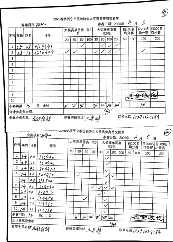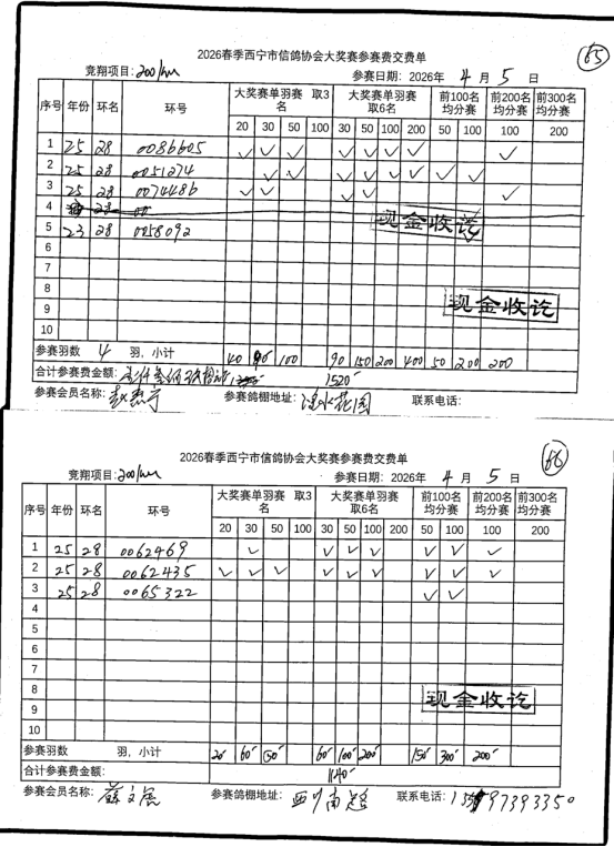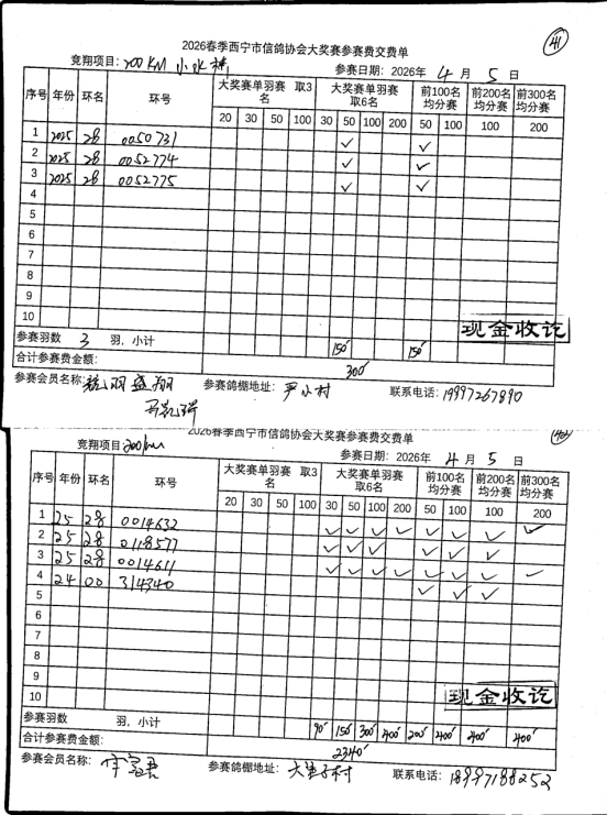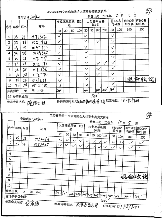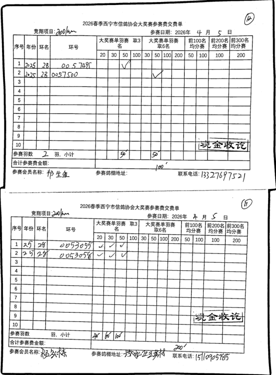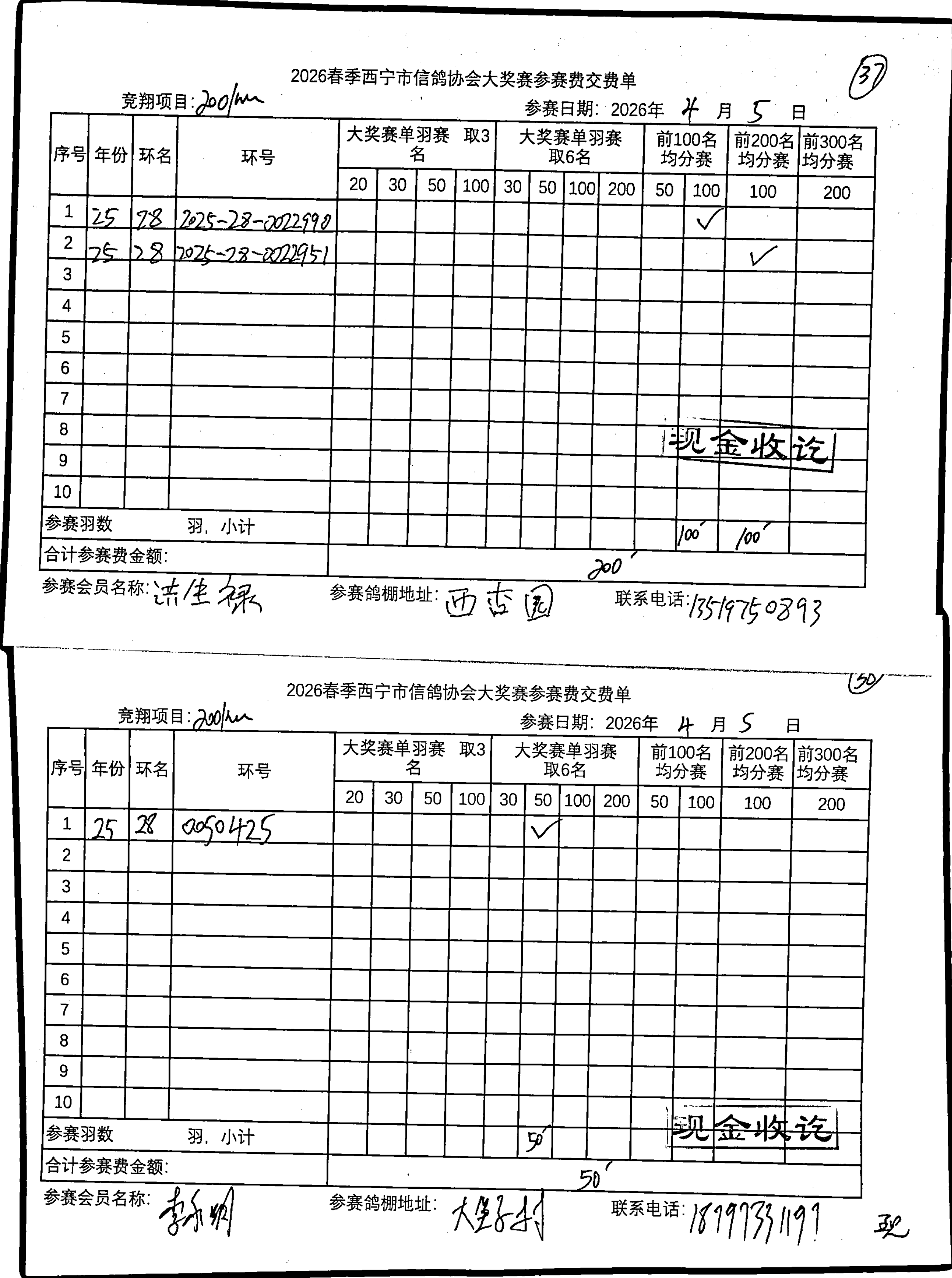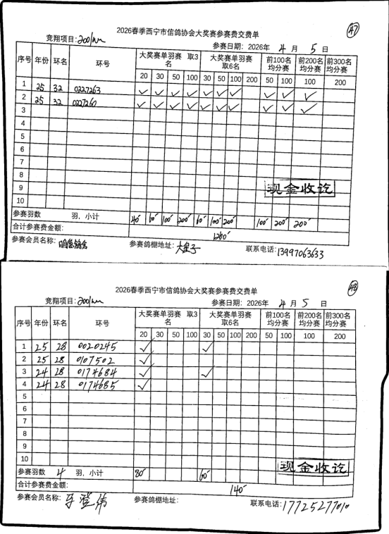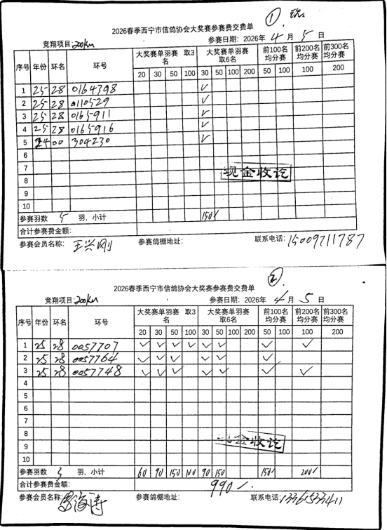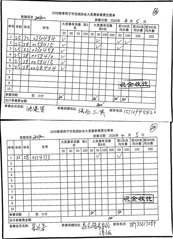 2026年春季小水桥大奖赛申报四关鸽王原始底单