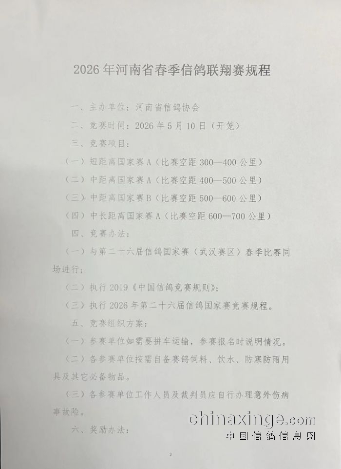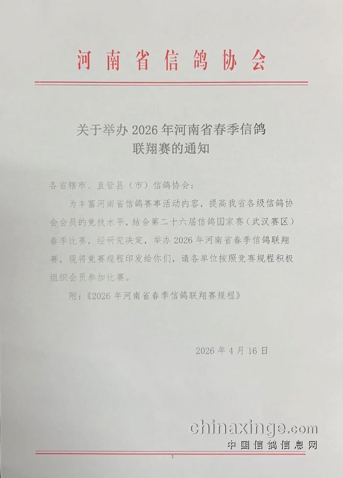 关于举办2026年河南省春季信鸽联翔赛的通知