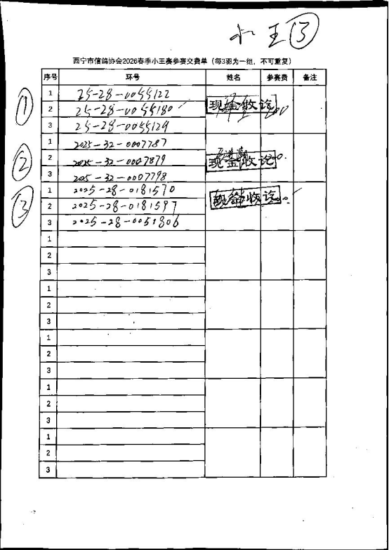 西宁市信鸽协会2026春季300公里奖金分配
