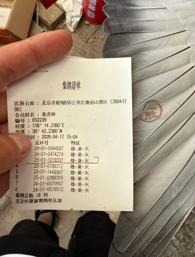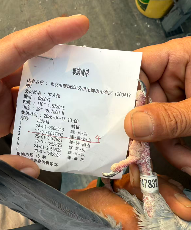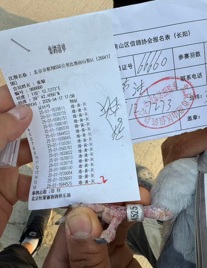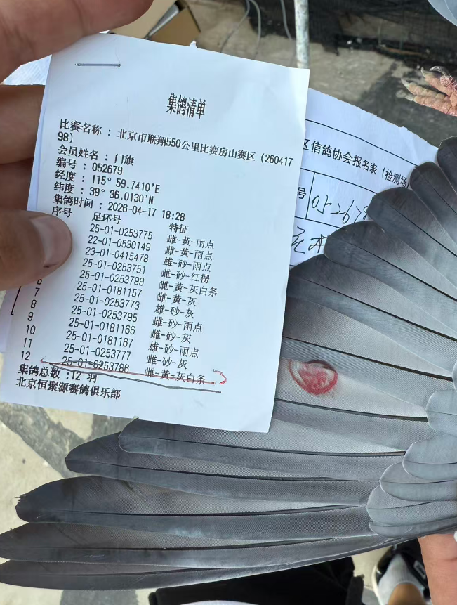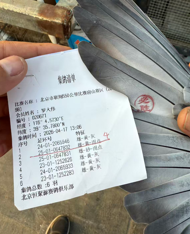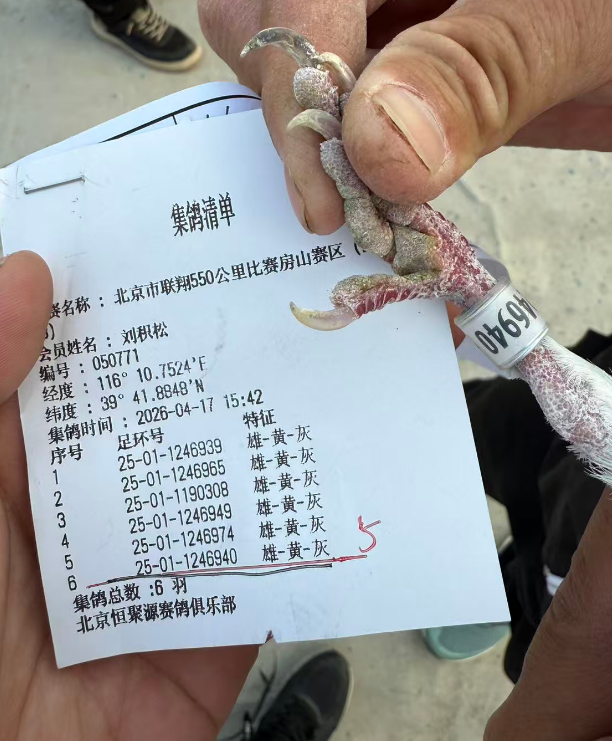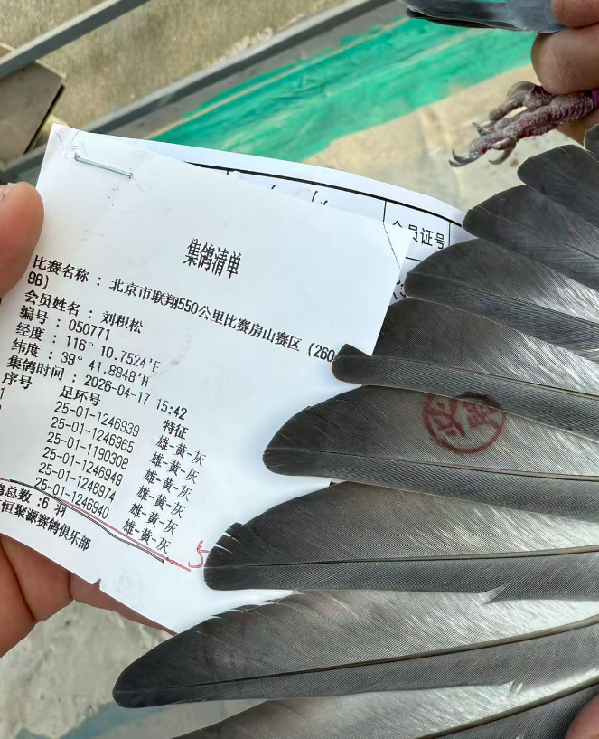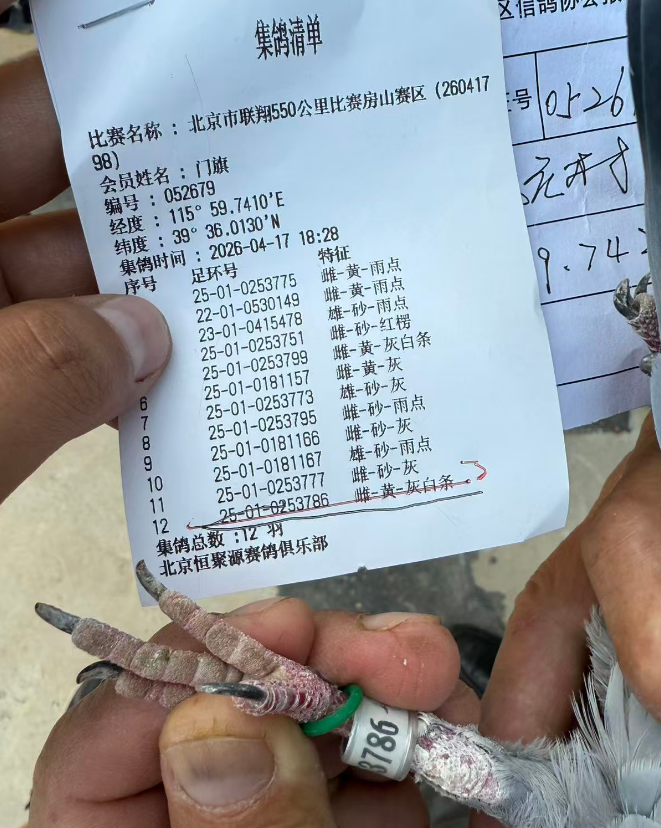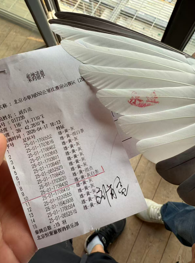 房山区信鸽协会2026年春季北京市联翔房山赛区成绩
