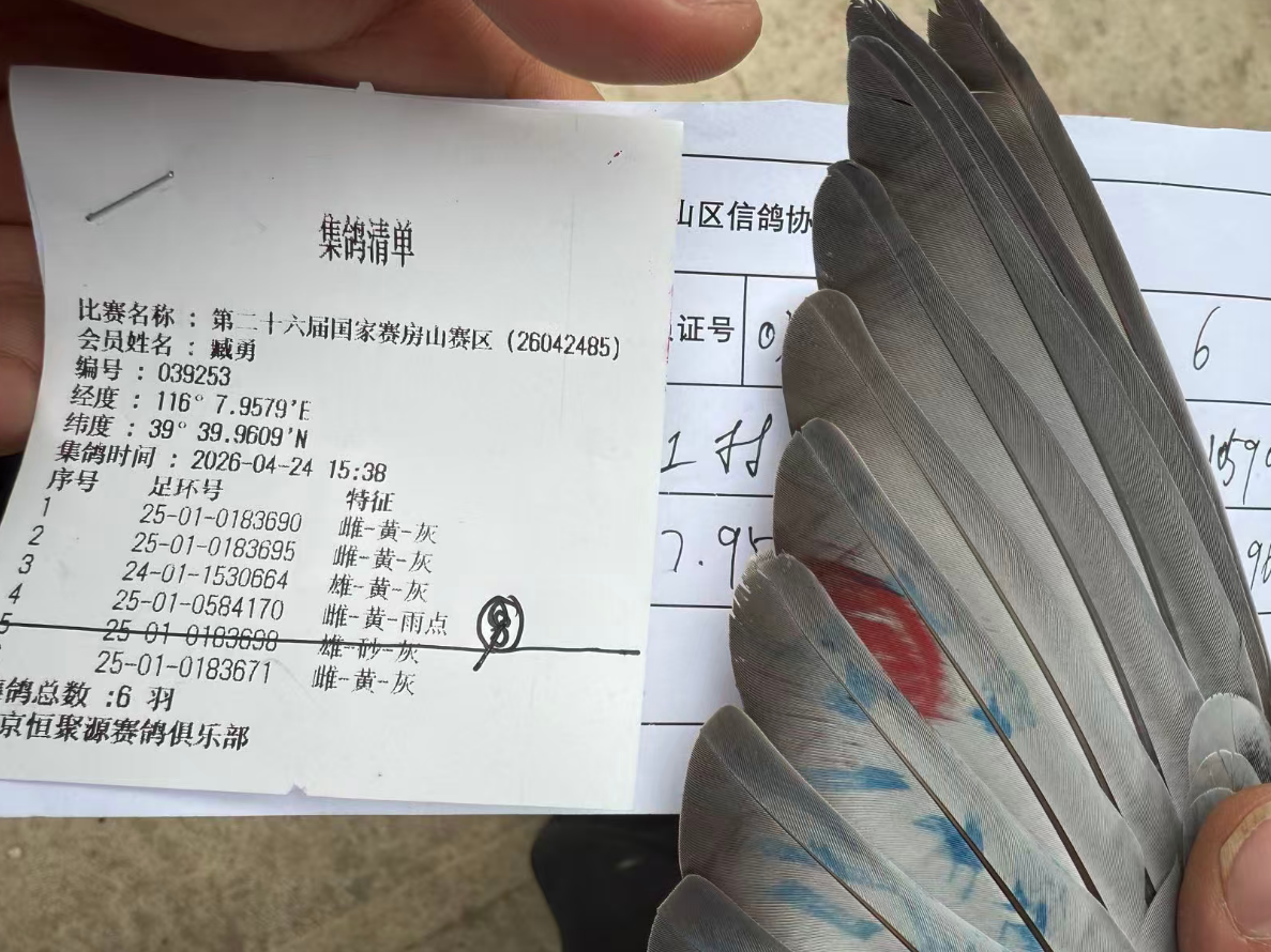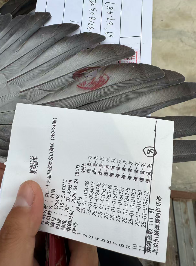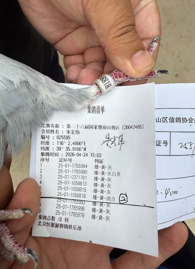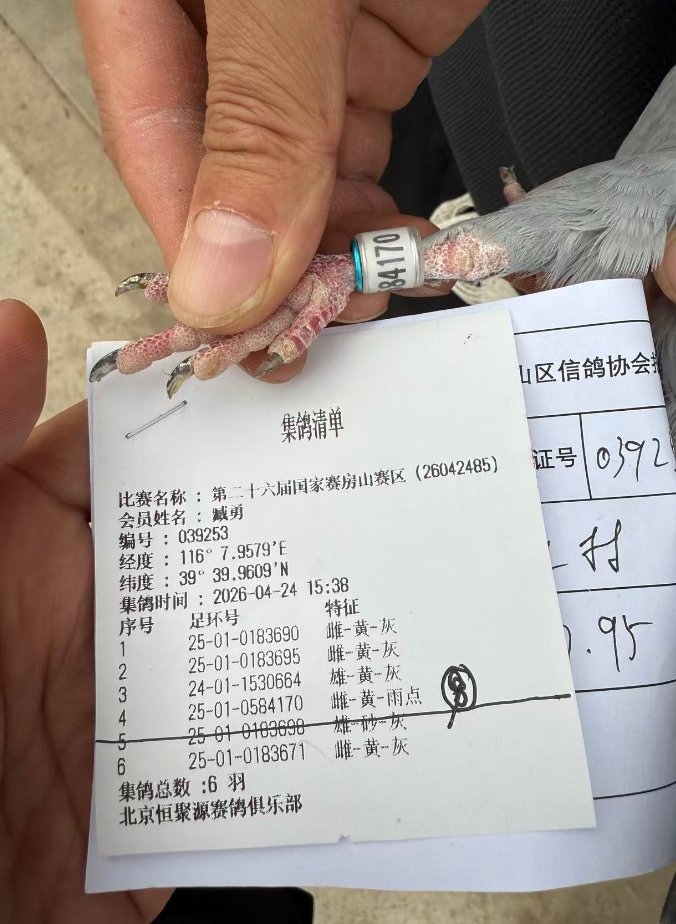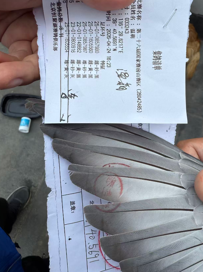 房山区信鸽协会2026年春季北京市联翔房山赛区成绩