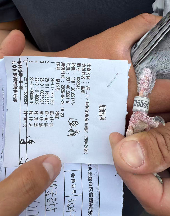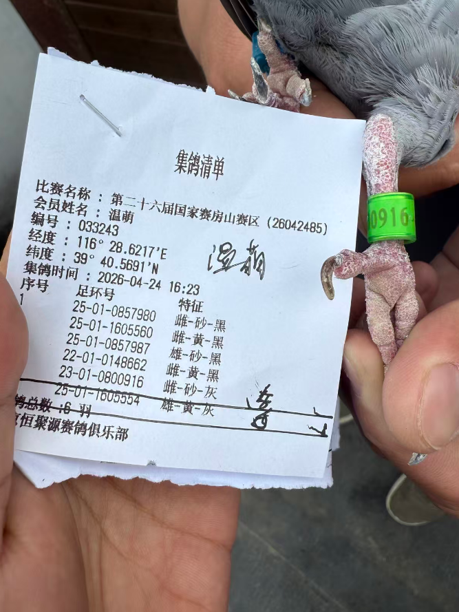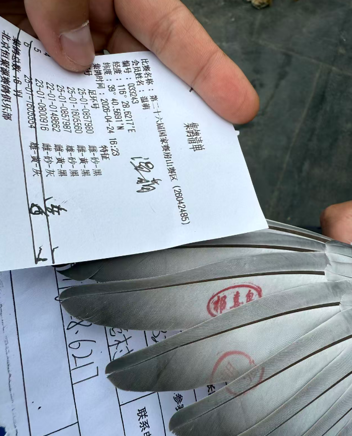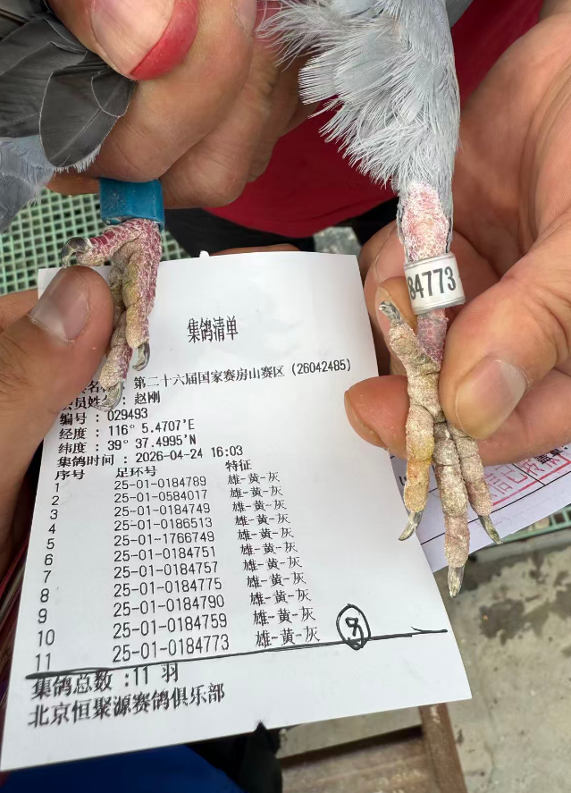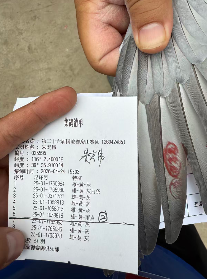 房山区信鸽协会2026年春季北京市联翔房山赛区成绩