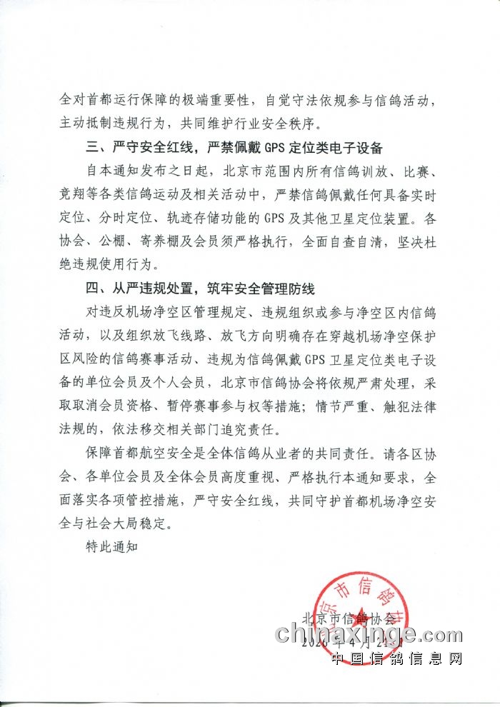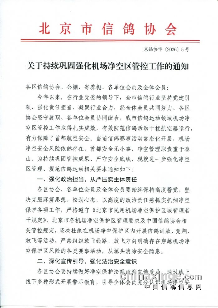 转发北京市信鸽协会关于学习贯彻净空保护培训会精神强化信鸽行业安全管理的通知