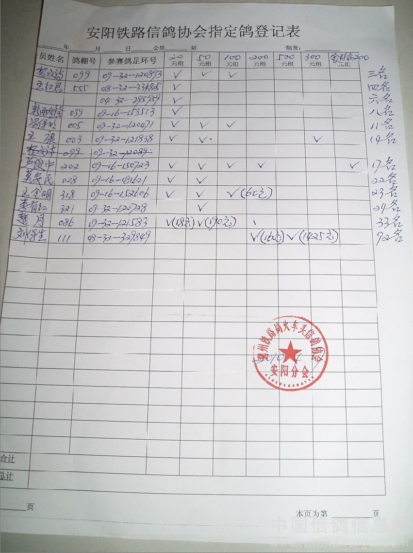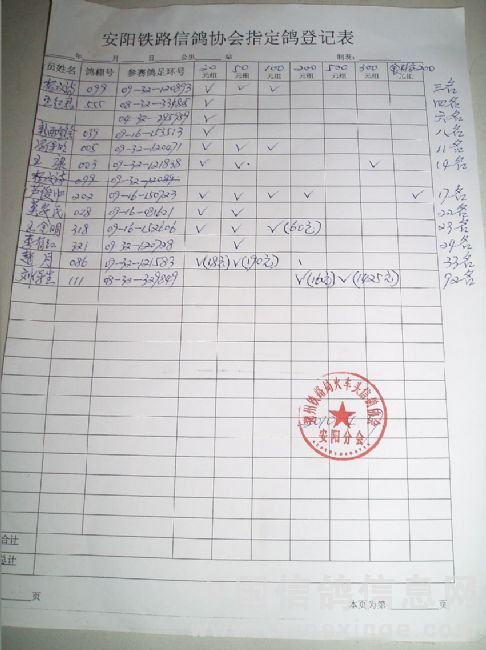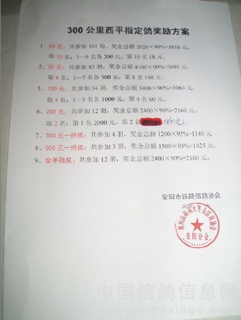 300公里西平站指定鸽奖金分配及指定鸽成绩