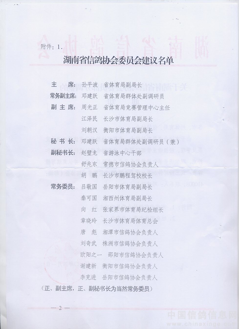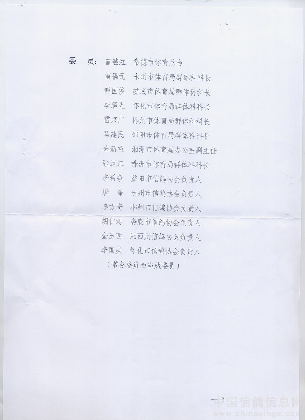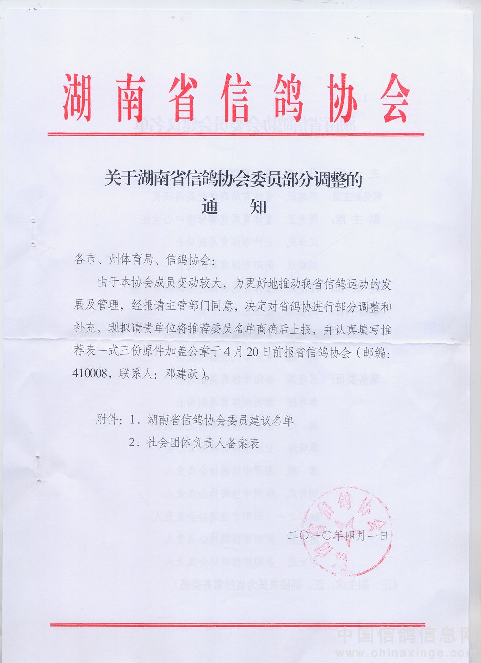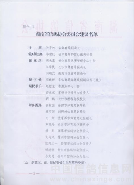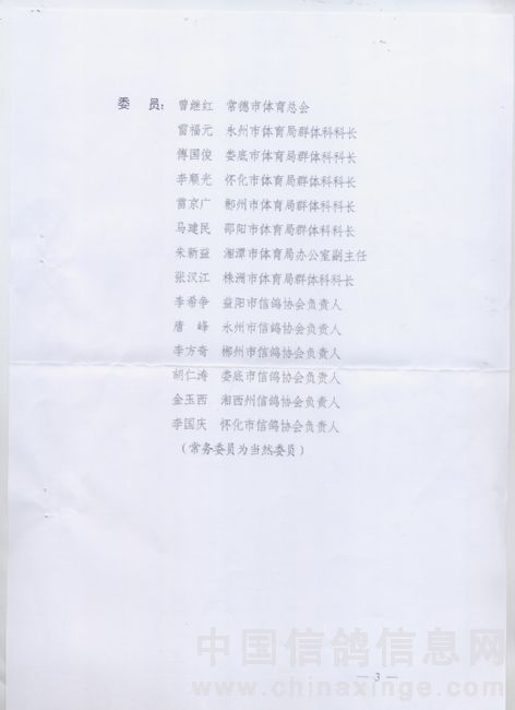 关于湖南省信鸽协会委员部分调整的通知
