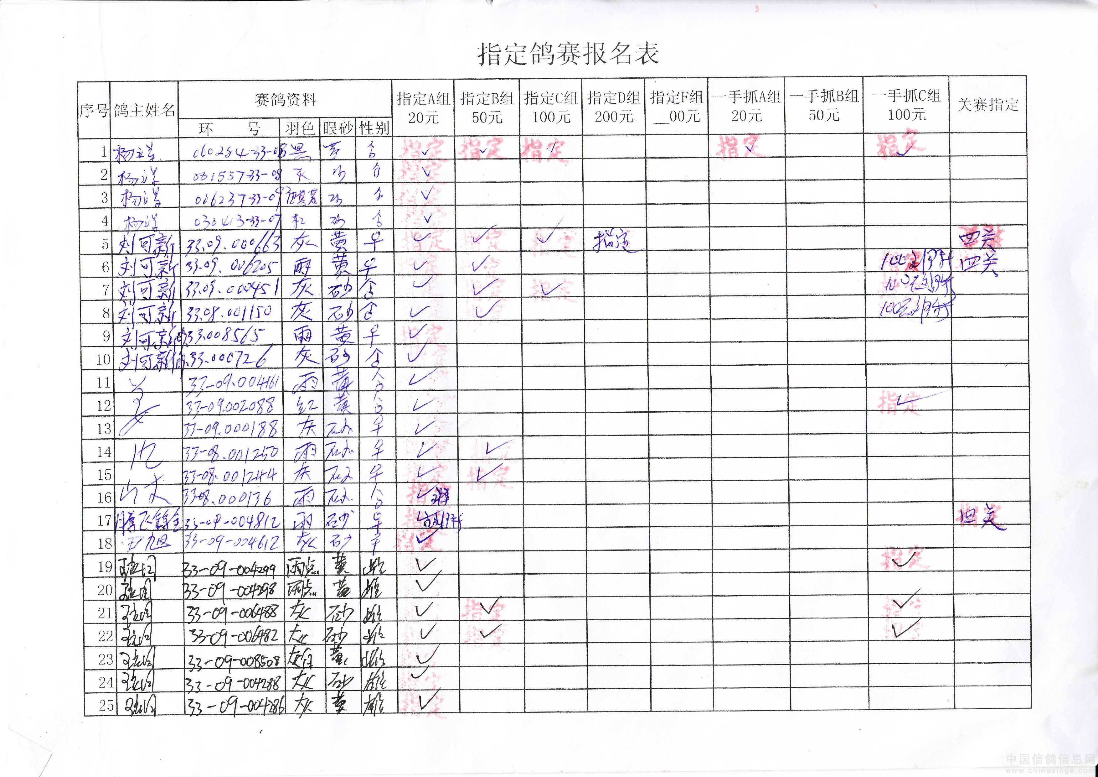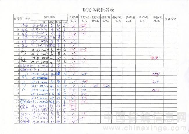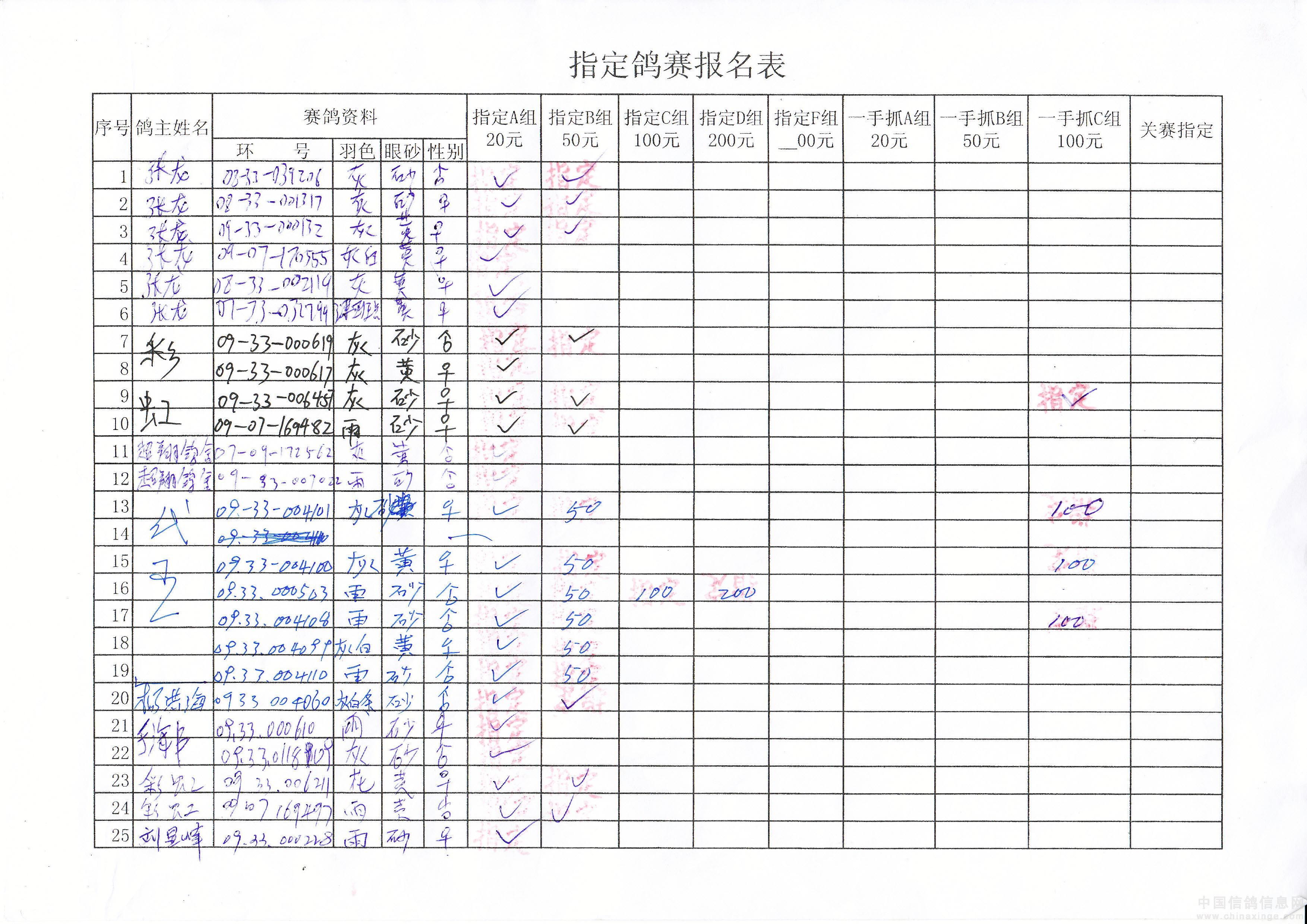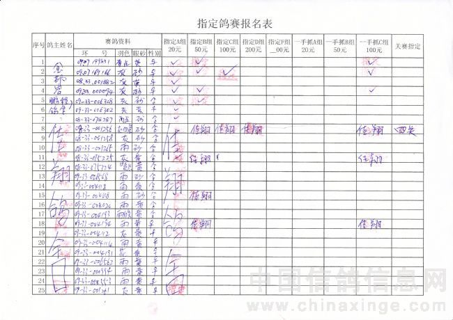 2010年春季500公里巴林右旗指定鸽原始单据