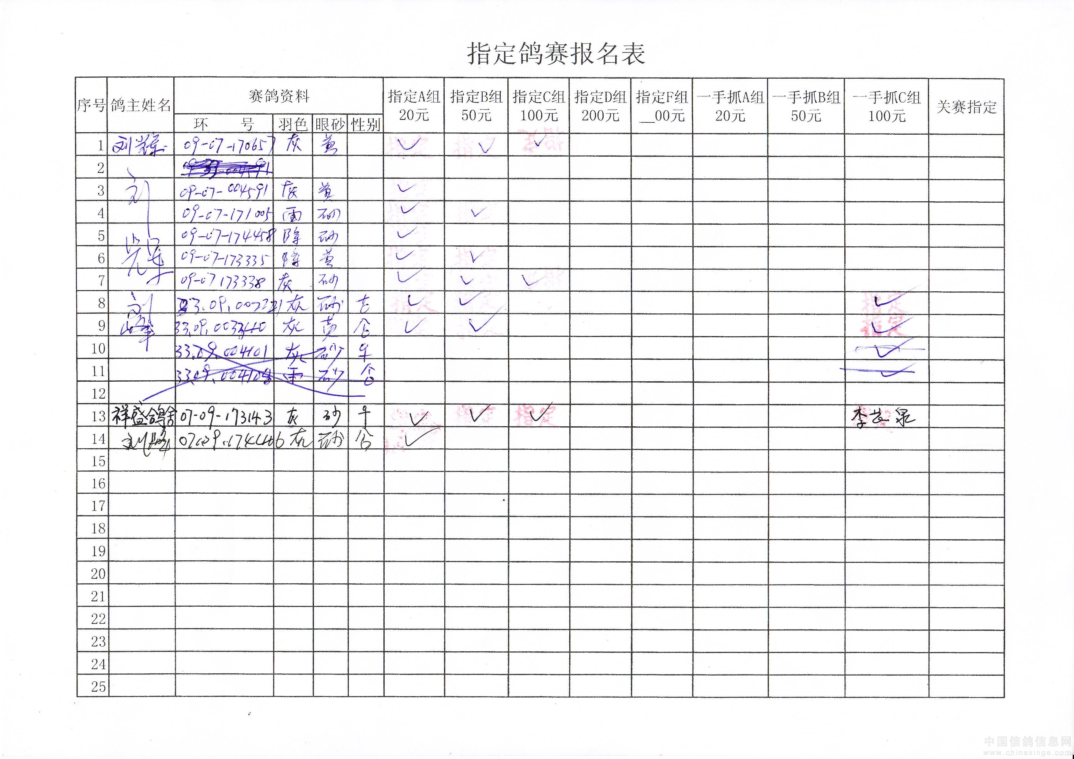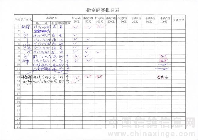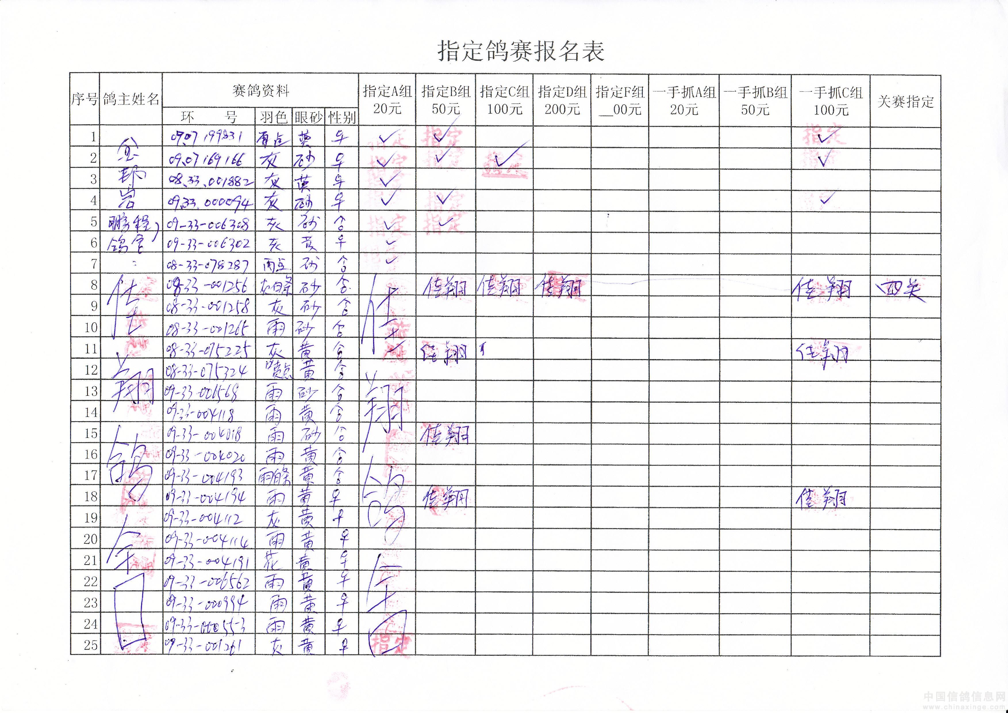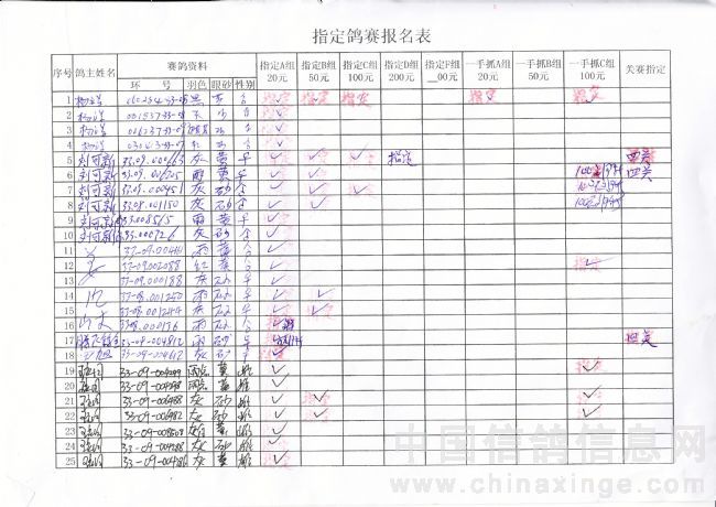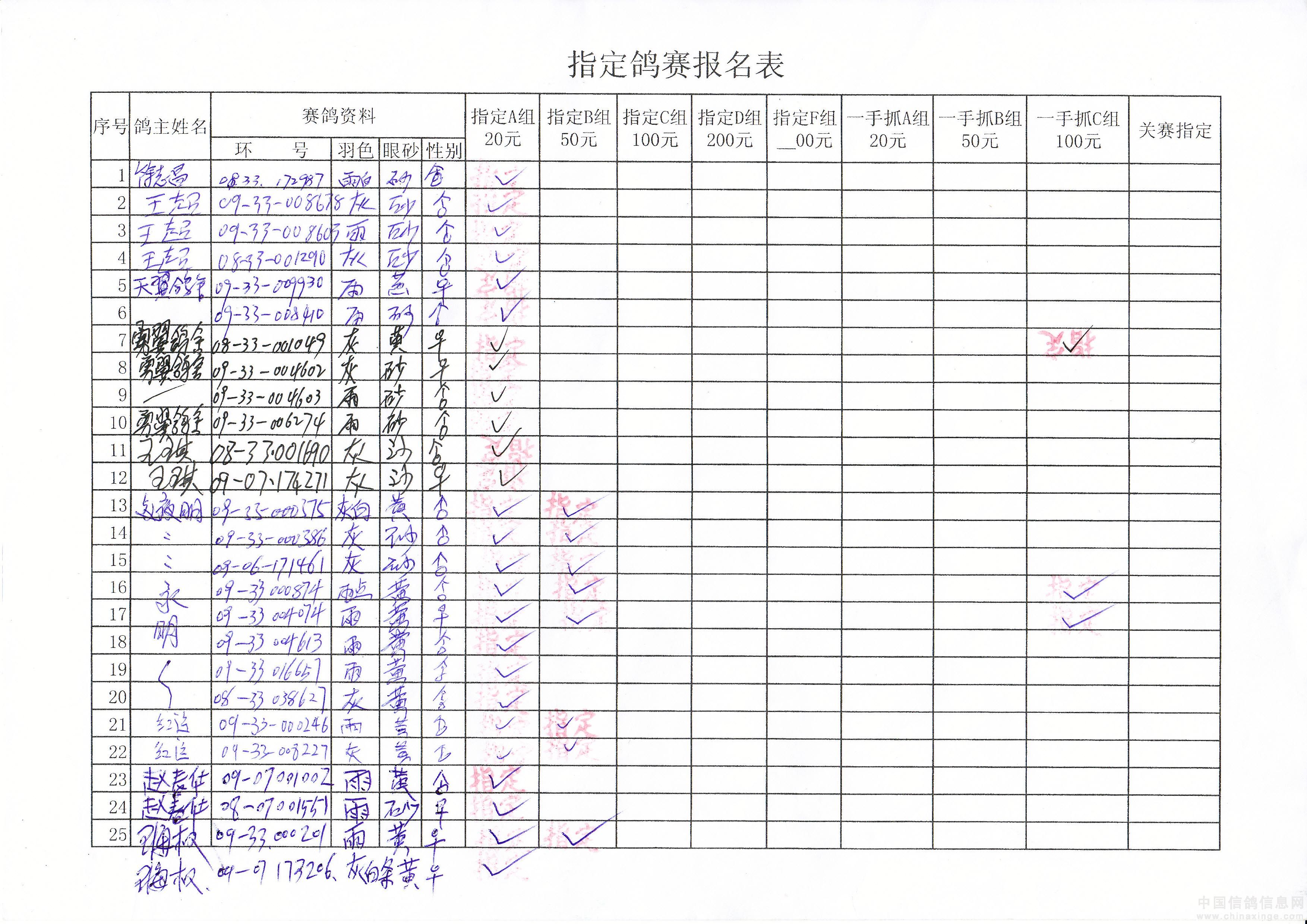 2010年春季500公里巴林右旗指定鸽原始单据