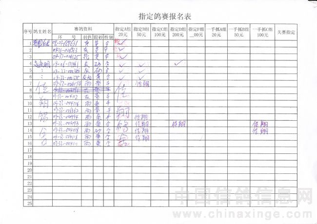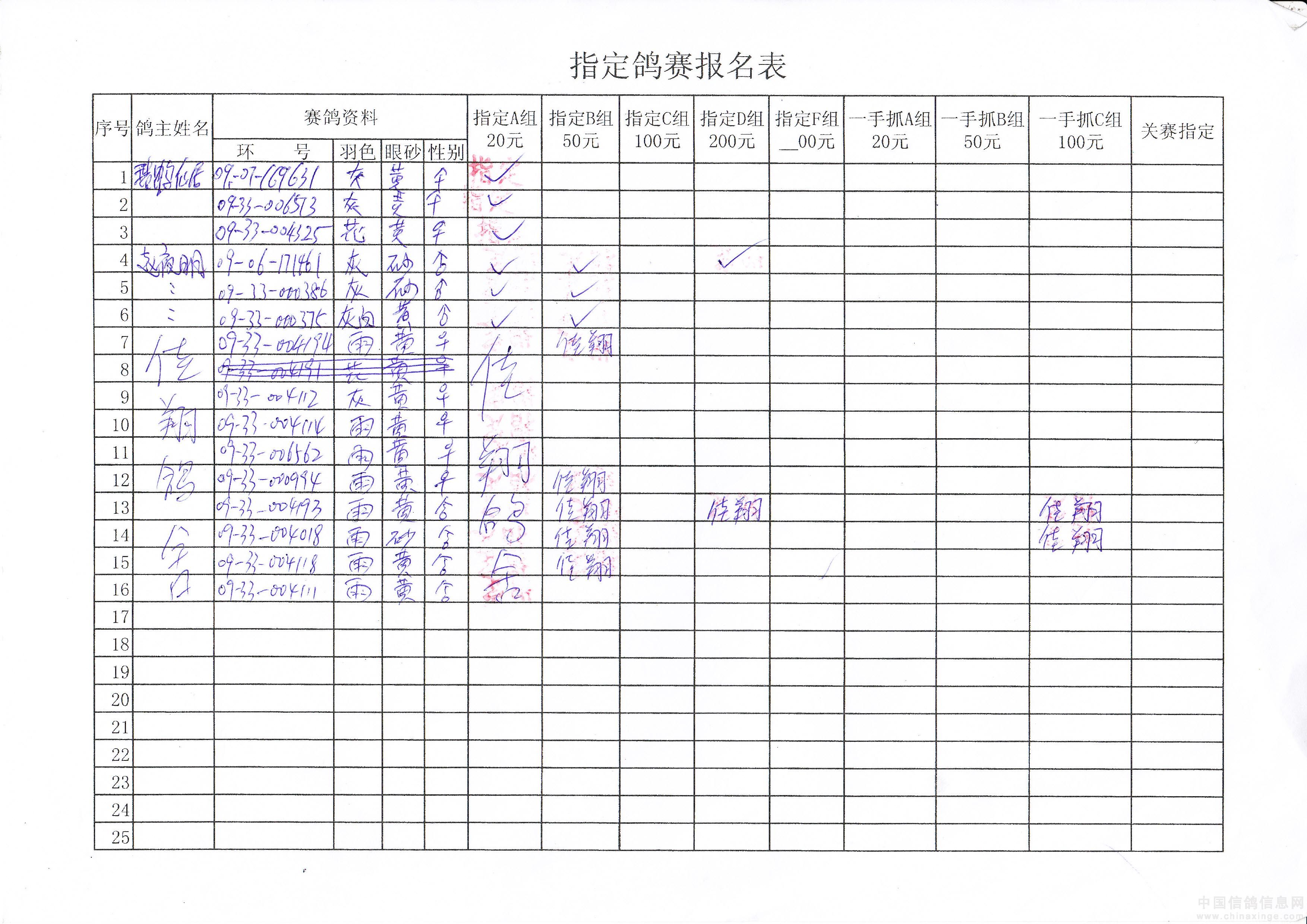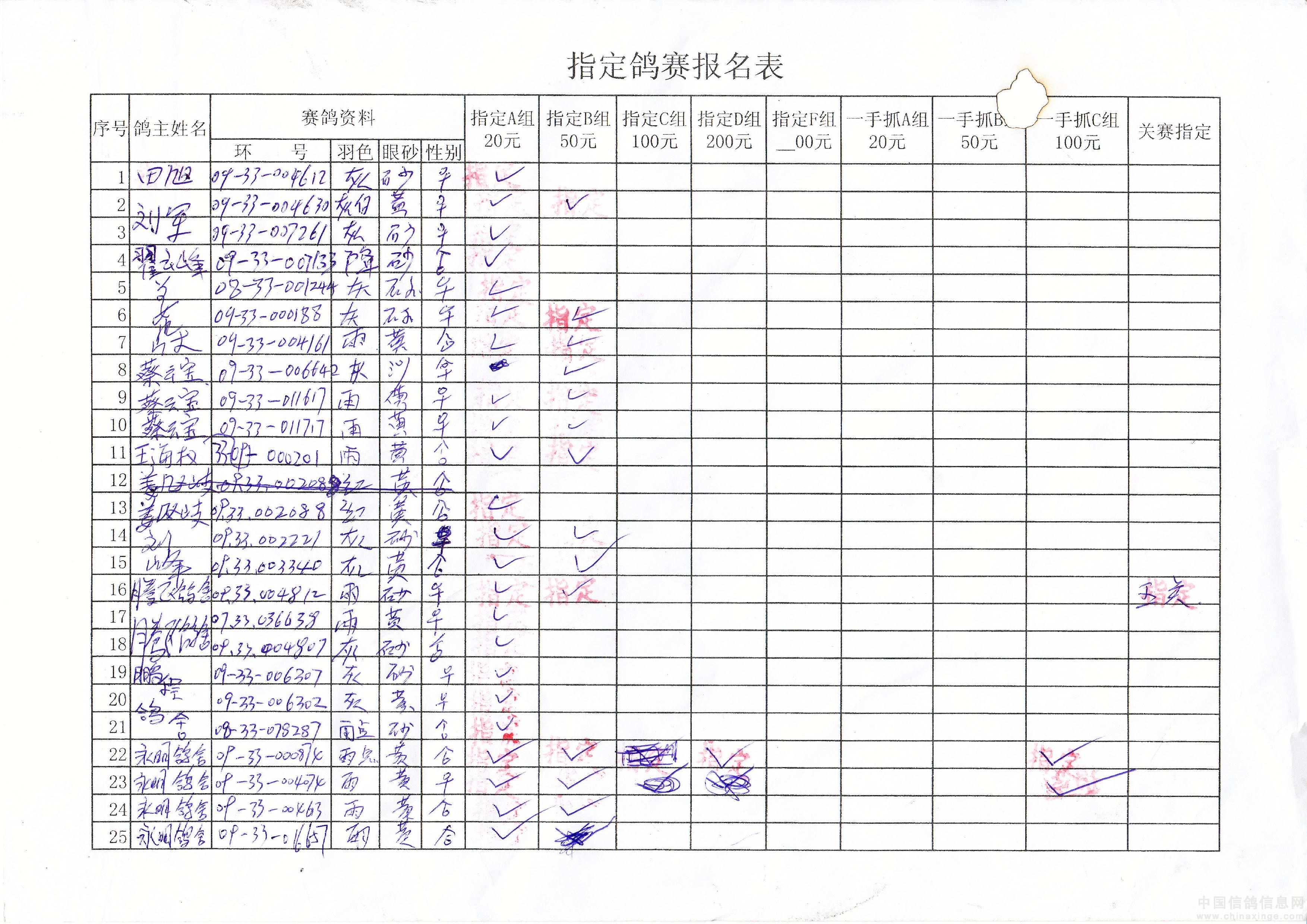 2010年春季600公里辽宁兴城站指定鸽原始单据
