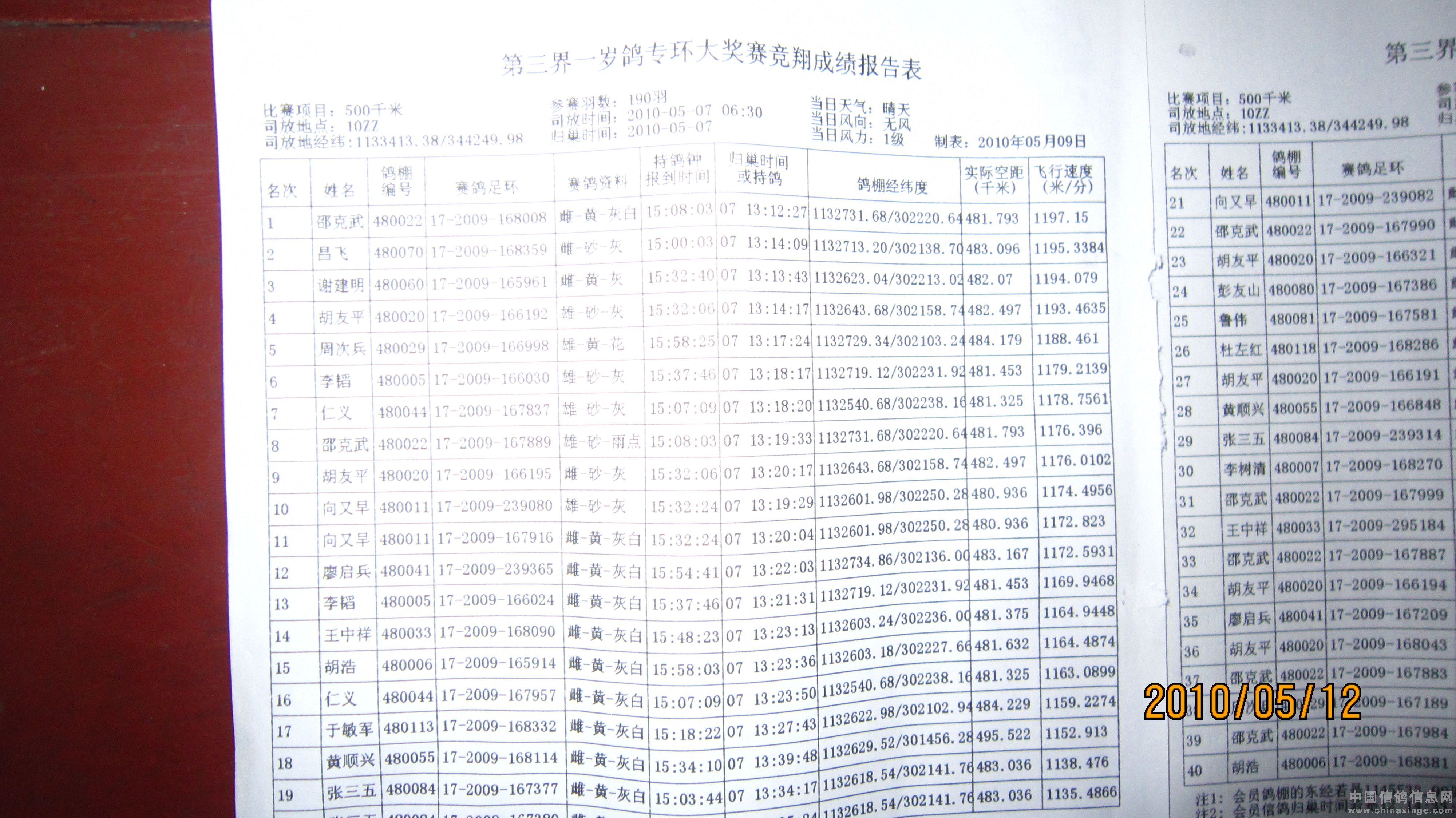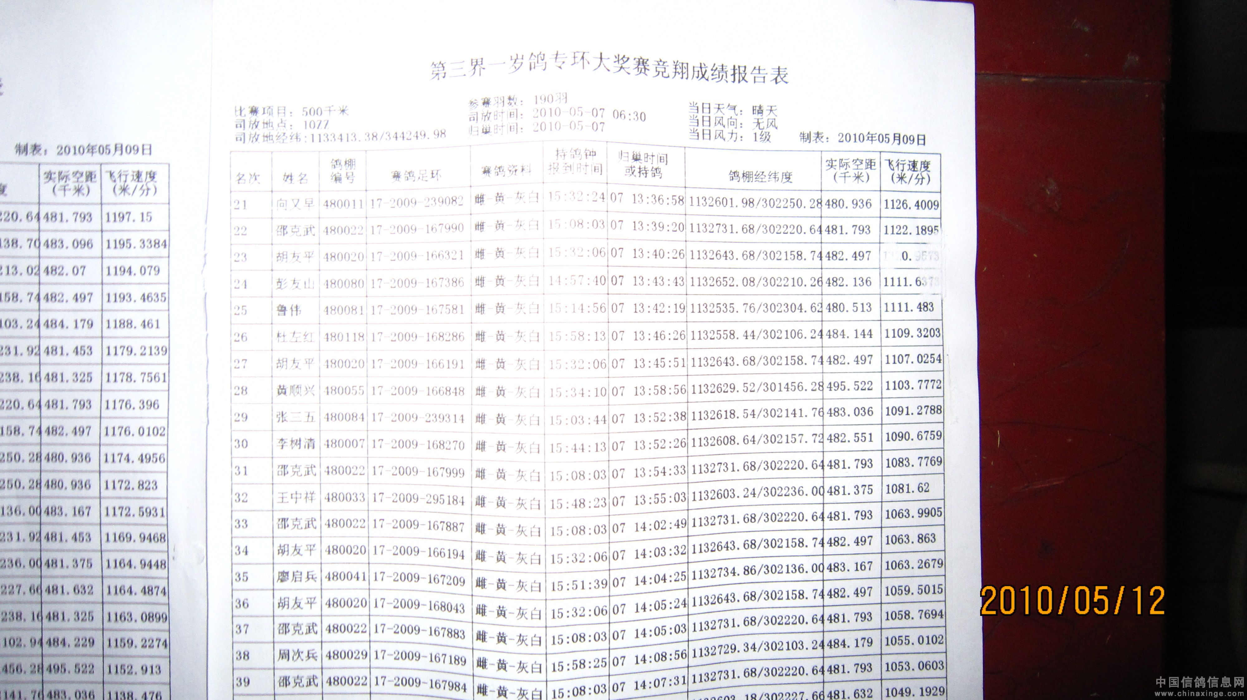 2010春5月7日500公里鄭州站 常規賽成績圖片