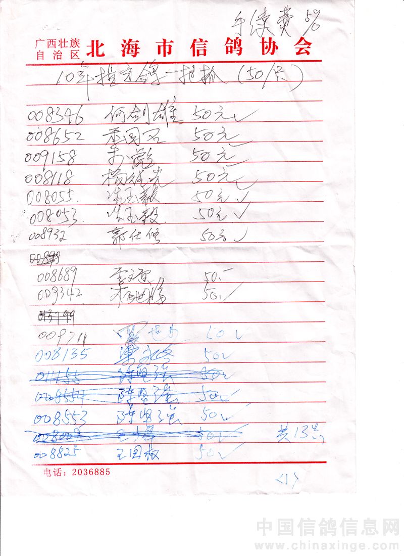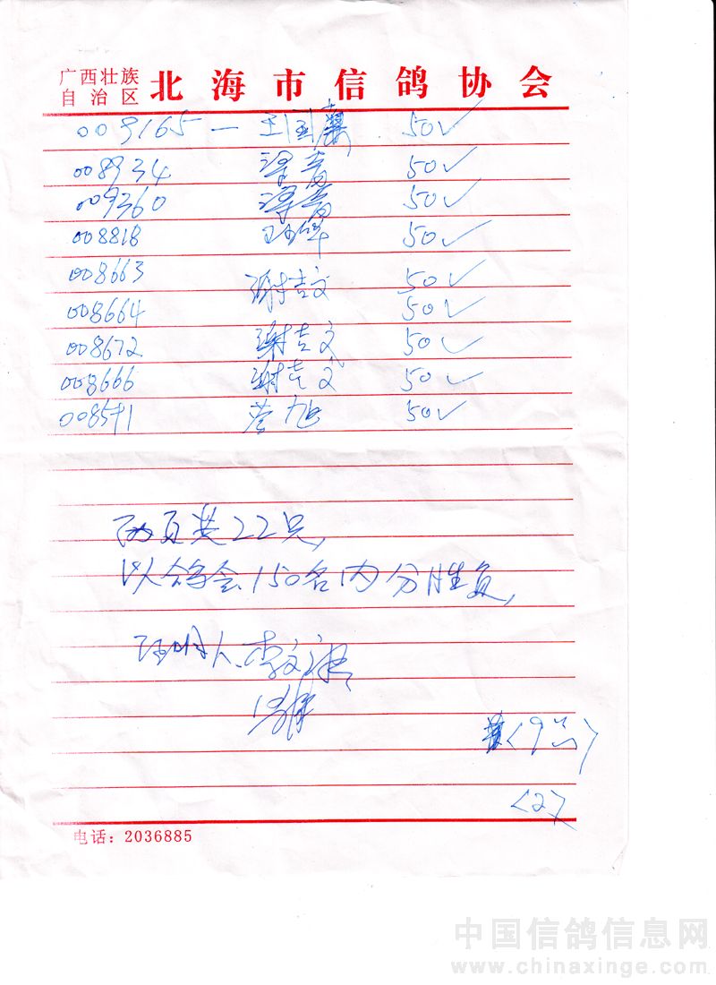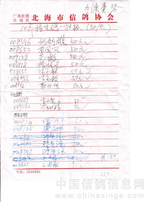 广西北海市信鸽协会2010年上半年三关赛高州站50元组指定鸽名单