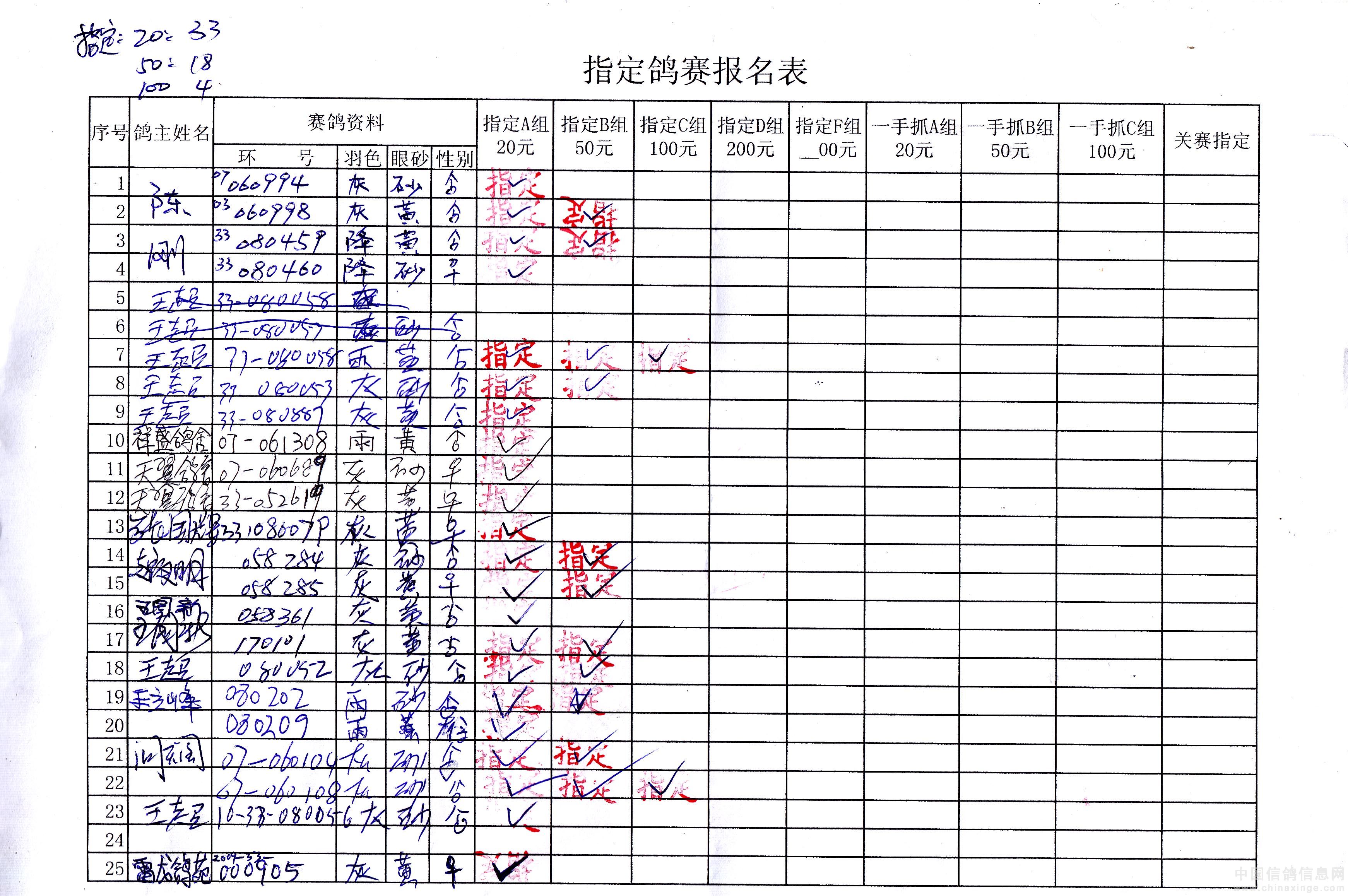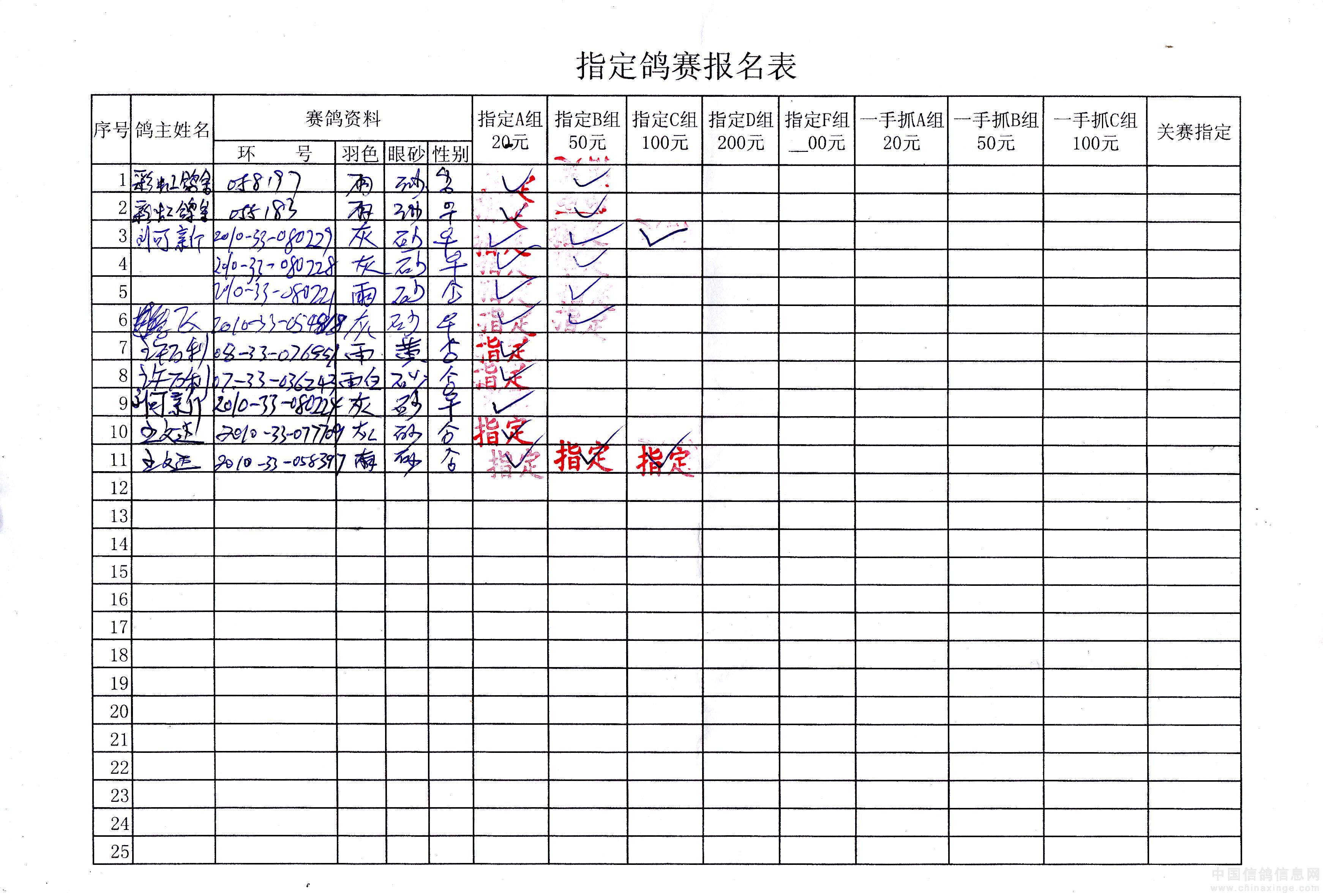 2010年150公里服先镇指定鸽原始单据