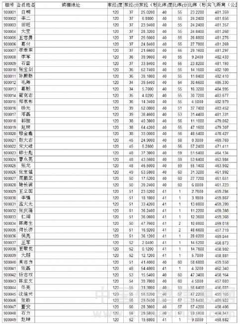 2019年秋季特比鸽王赛经纬度