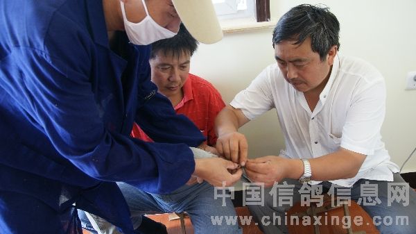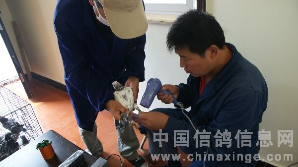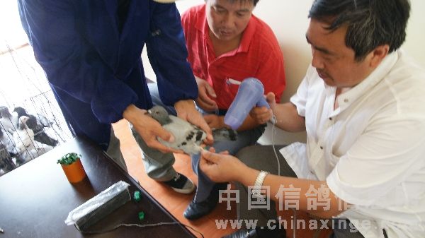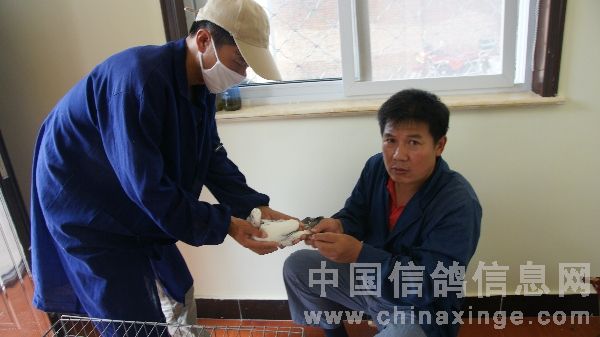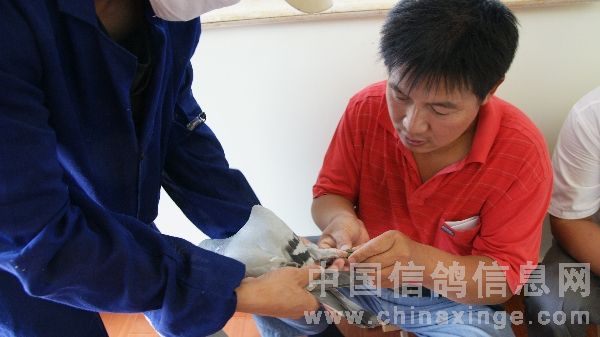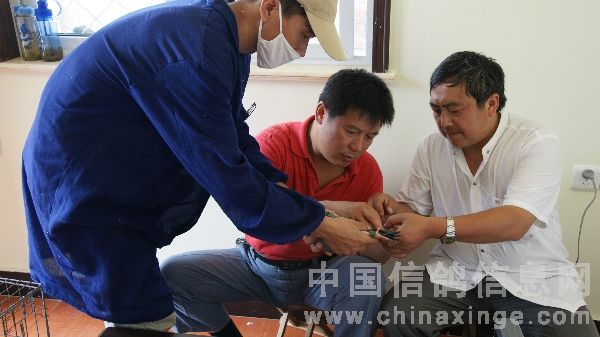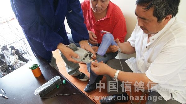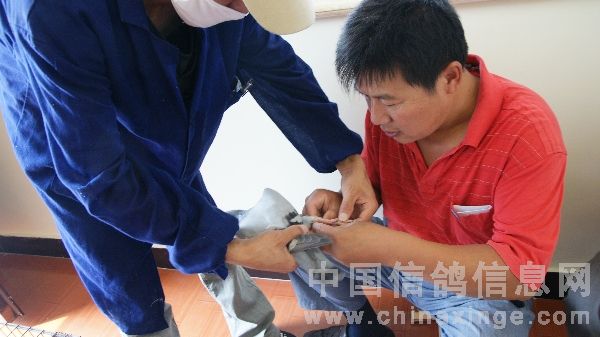 中原油田信鸽协会百鸽苑第三羽鸽佩戴电子环即将结束的喜悦