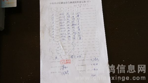 中原油田信鸽协会百鸽苑首批鸽40羽佩戴电子环结束原始资料