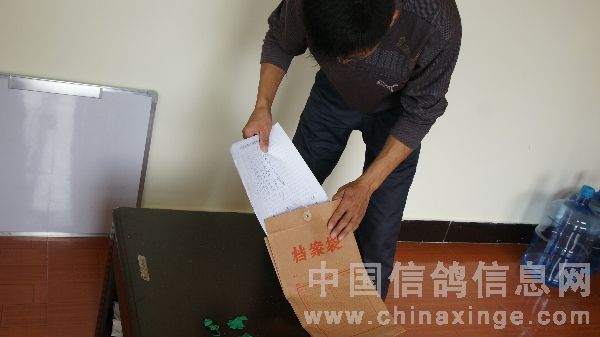 中原油田信鸽协会百鸽苑首批鸽40羽佩戴电子环结束,裁判及鸽友代表签字