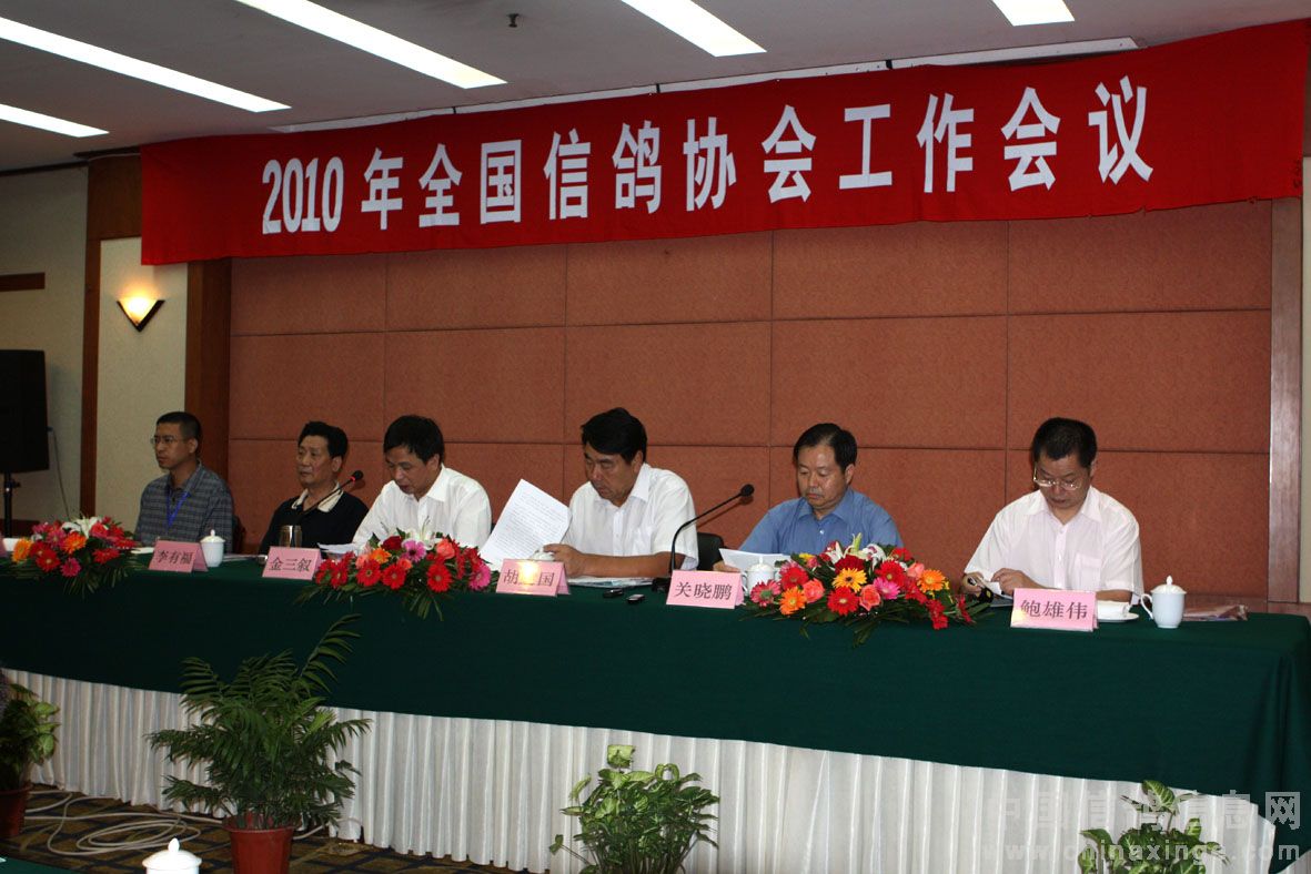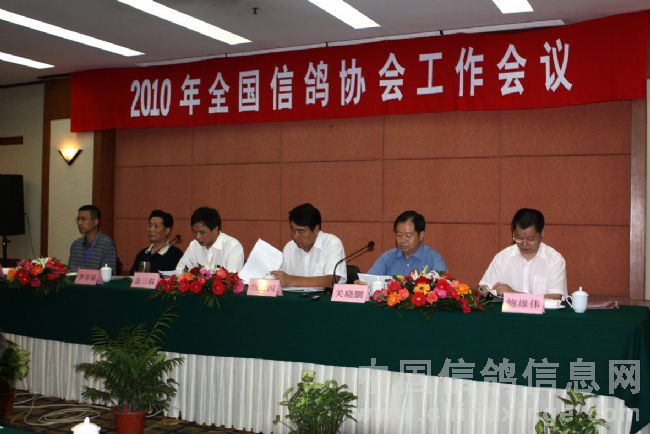 9月1日至2日,中国信鸽协会在浙江宁波市召开2010年全国信鸽协会工作会议,来自全国29个省、自治区、直辖市及火车头体协、石油系统的信鸽协会代表,以及新疆体育总会、飙友公棚、翔大公棚、蓝羽公棚等的代表共80余人参加了会议。国家体育总局社会体育指导中心主任、中国信鸽协会主席胡建国,宁波市体育局局长金三叙等出席了会议。