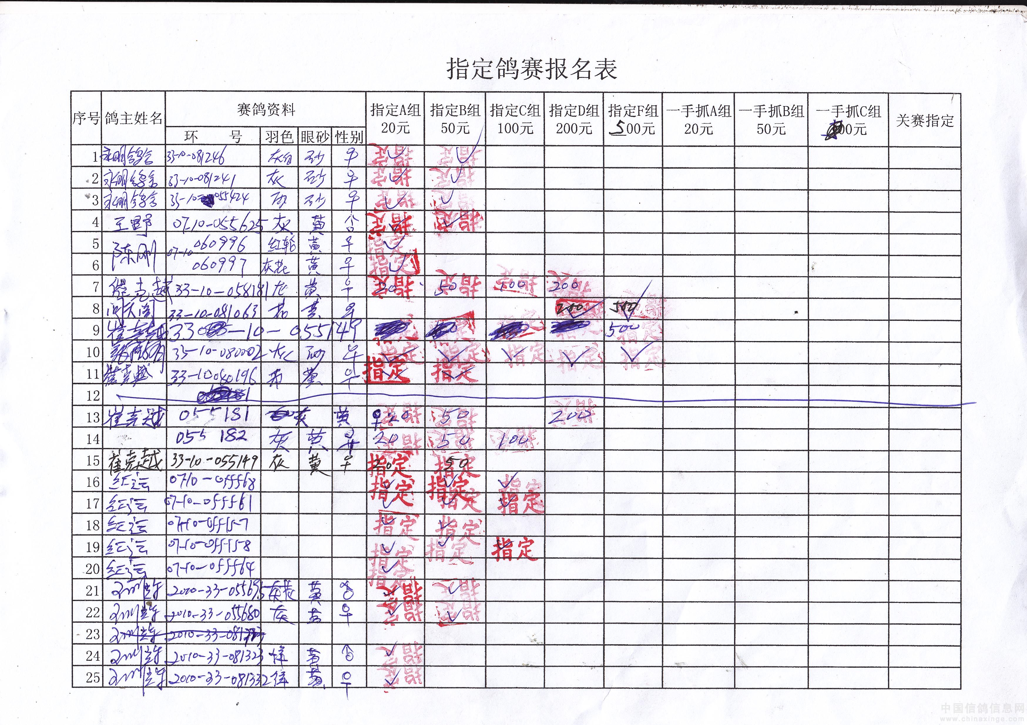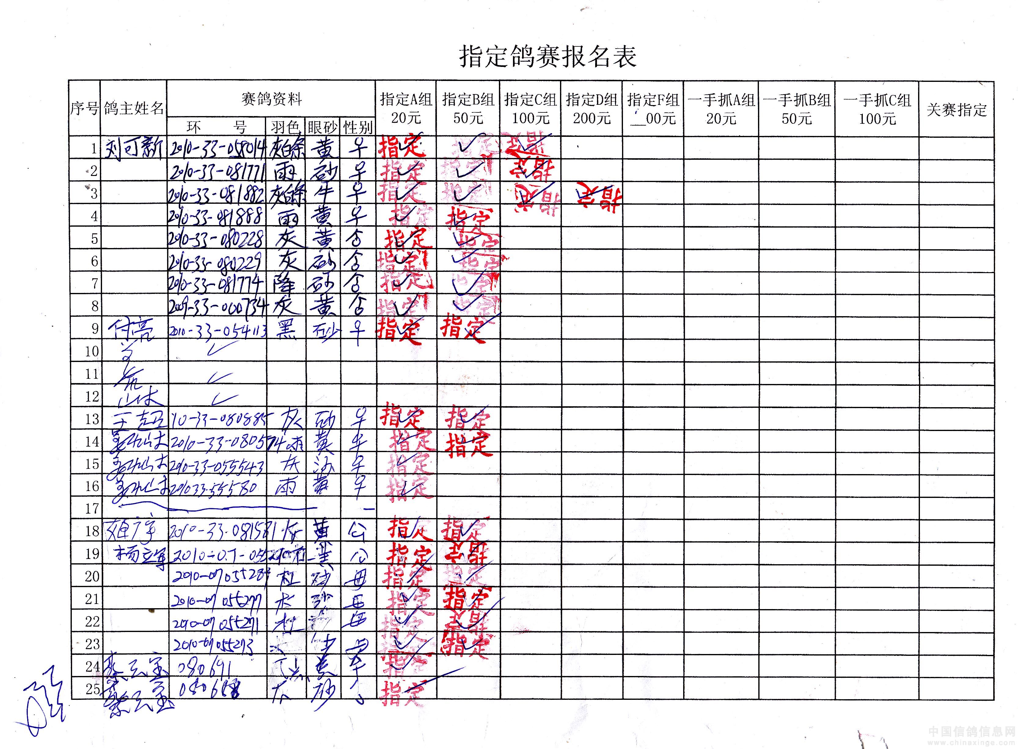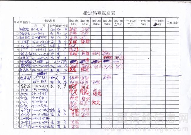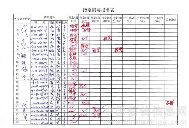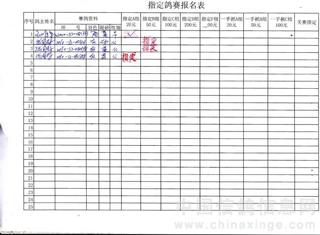 吉林油田信鸽协会2010年秋500公里巴林右旗站指定鸽原始单据