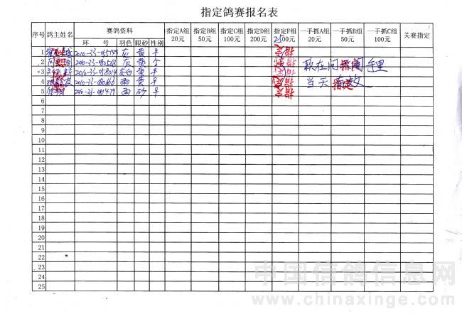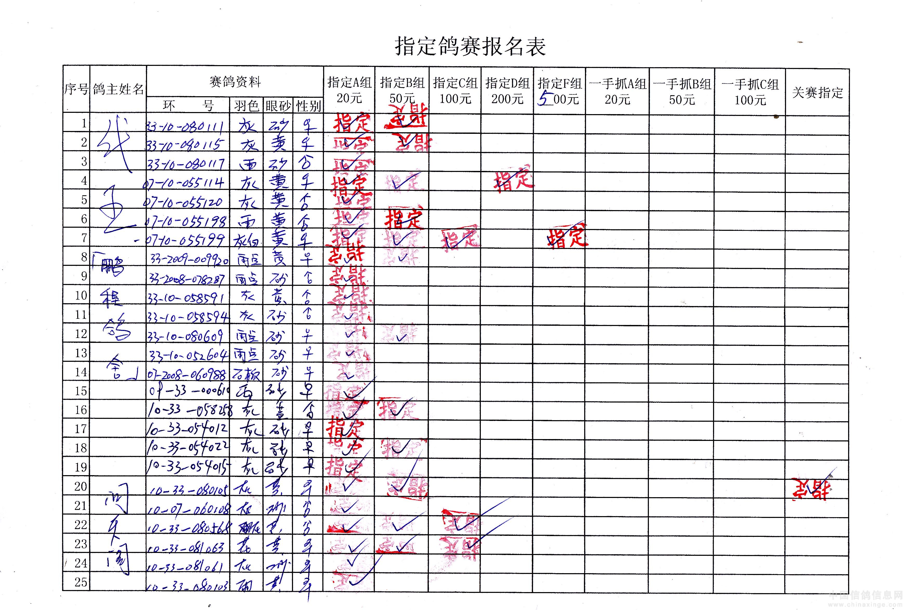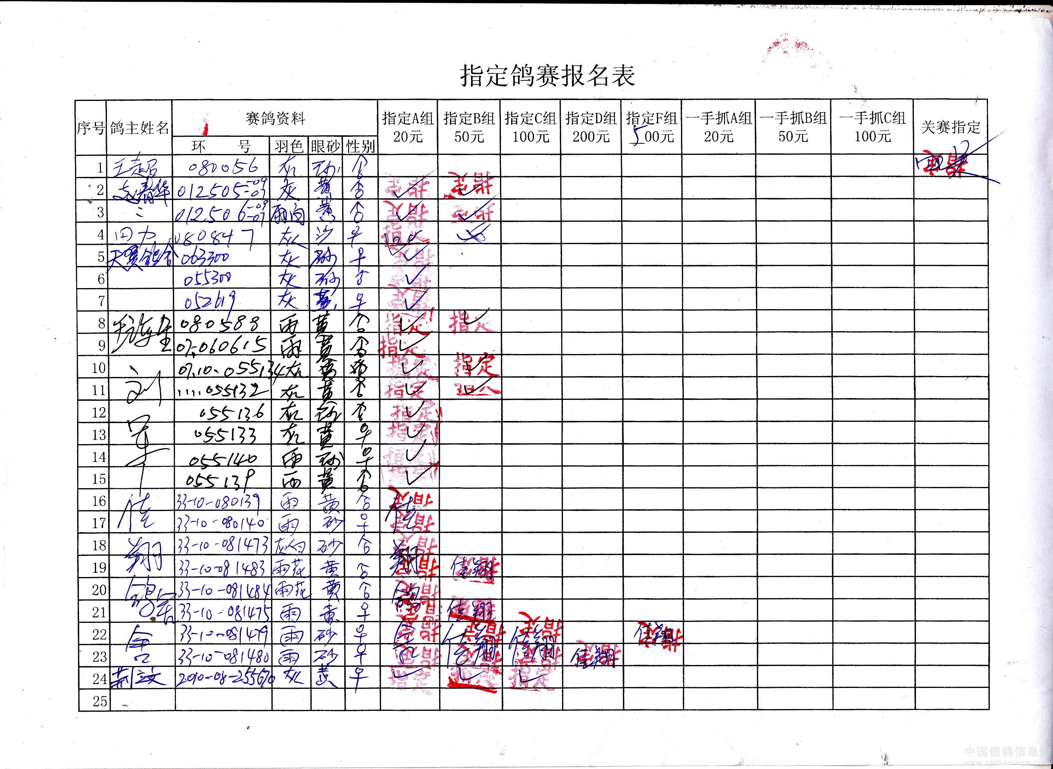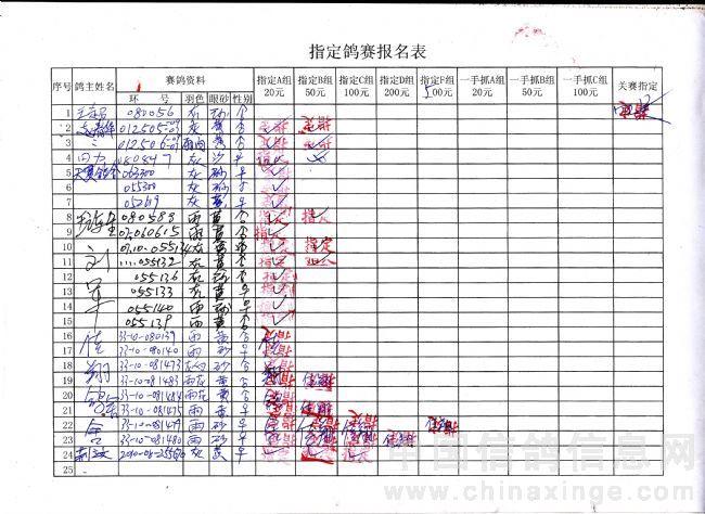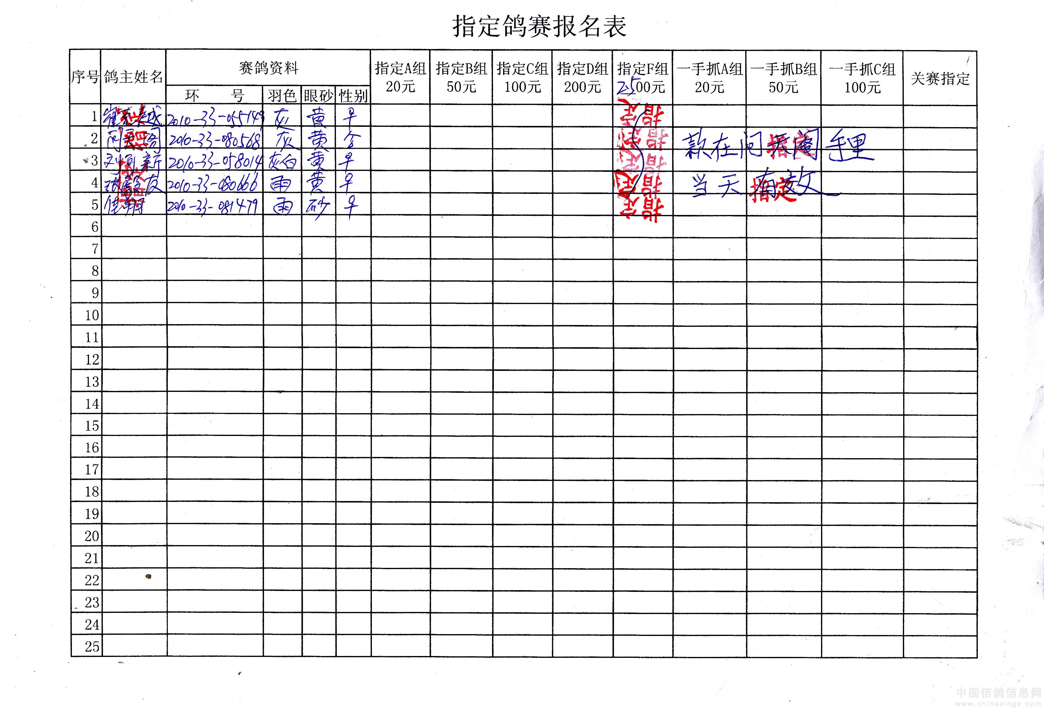 吉林油田信鸽协会2010年秋500公里巴林右旗站指定鸽原始单据