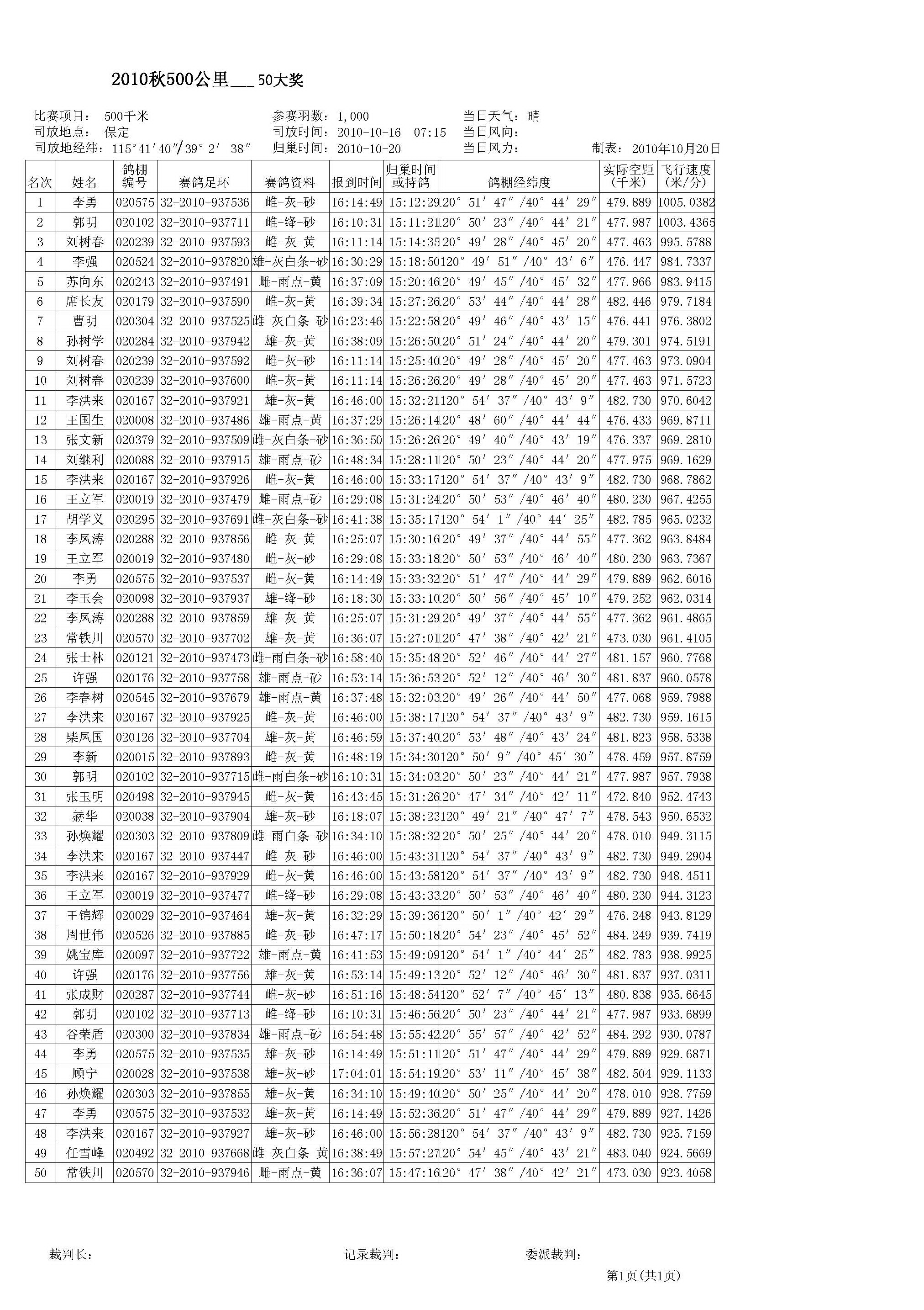 2010秋500公里50大奖赛