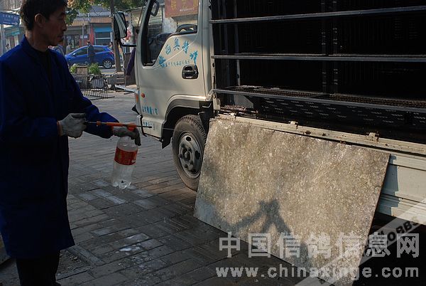 西安市信鸽协会400公里比赛集鸽前车辆清扫消毒