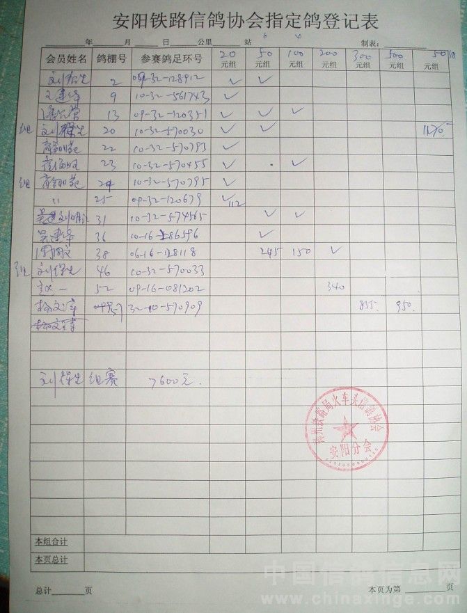 河南省安阳市铁路信鸽协会