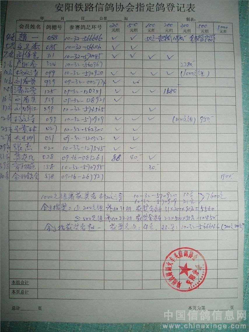 河南省安阳市铁路信鸽协会