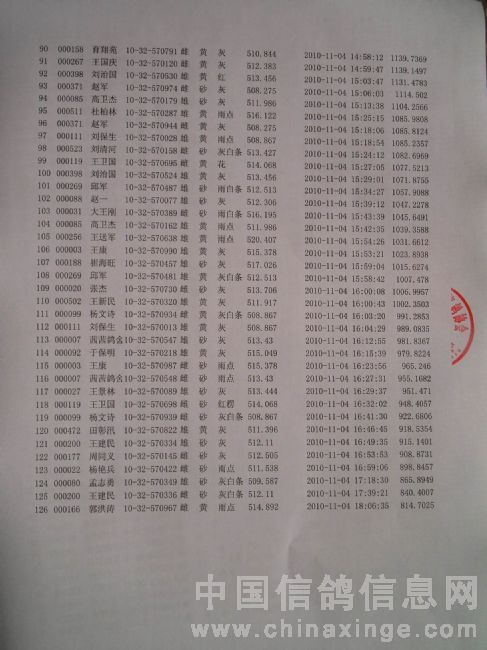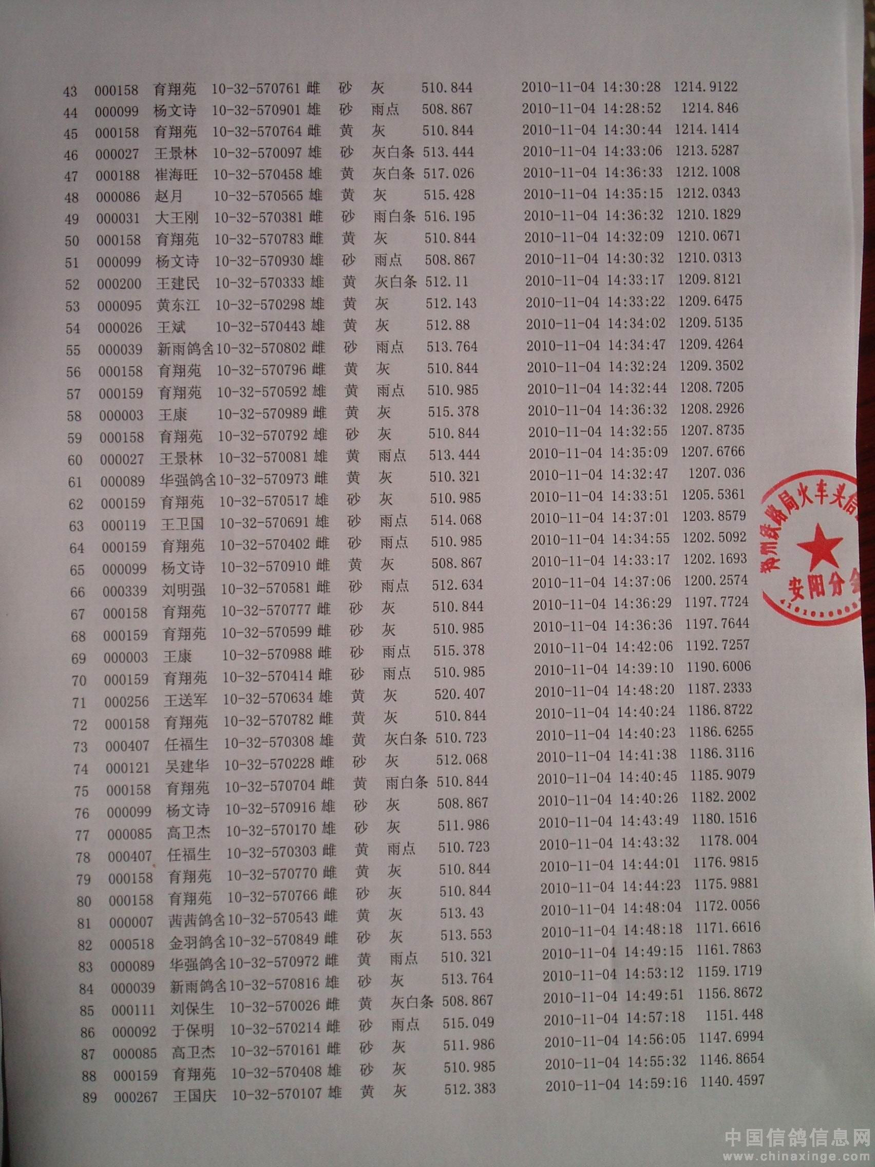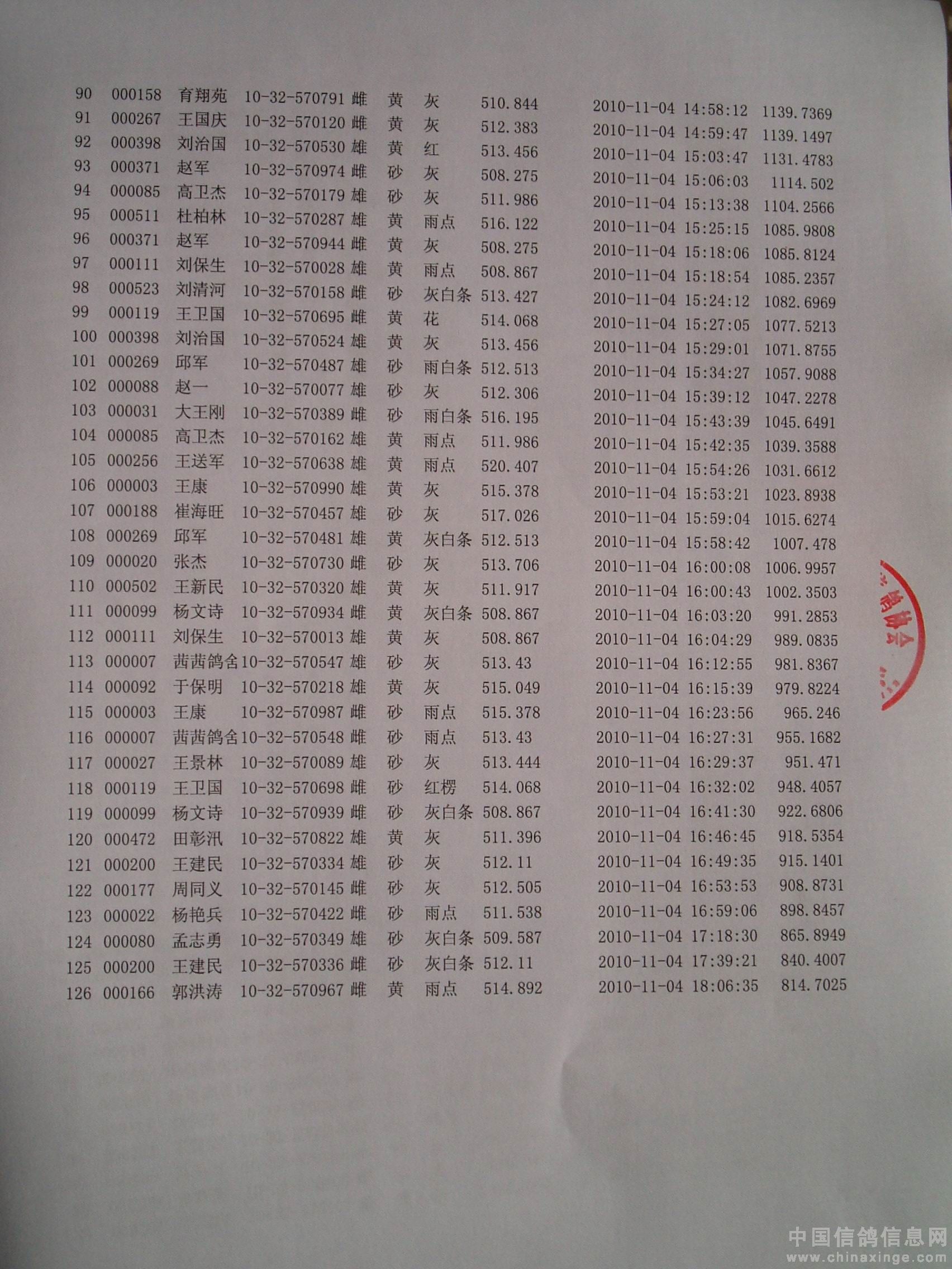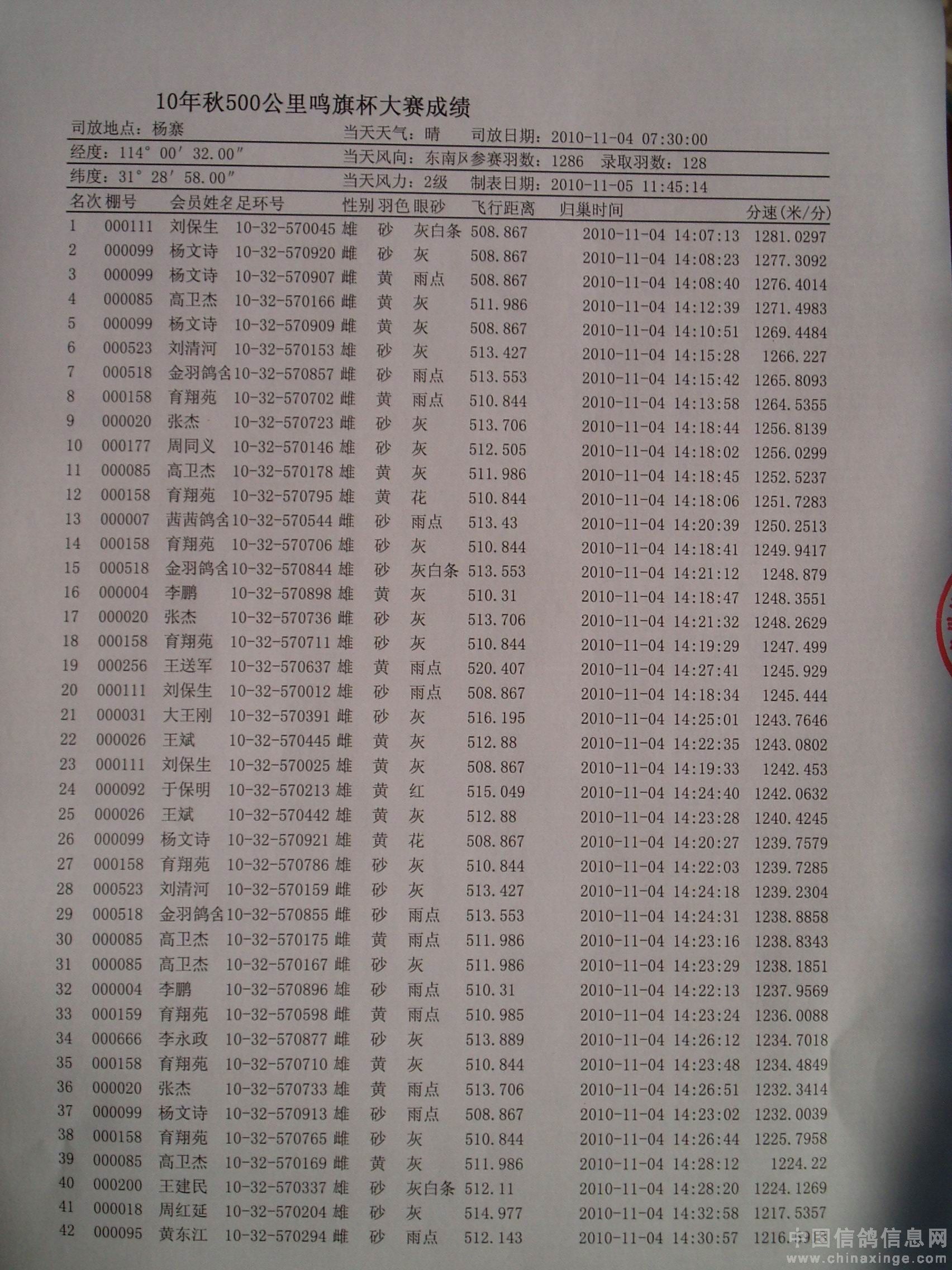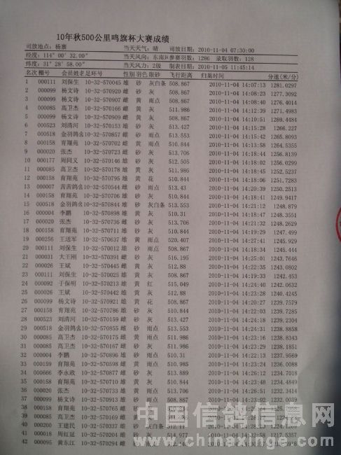 10年秋500公里鸣旗杯大赛成绩