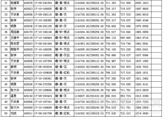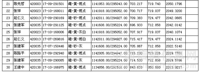 咸宁市信鸽协会2021年(秋) 五关赛综合成绩报告表
