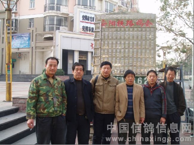 河南省铁路鸽会.阎国荣会长与工作人员合影留念: