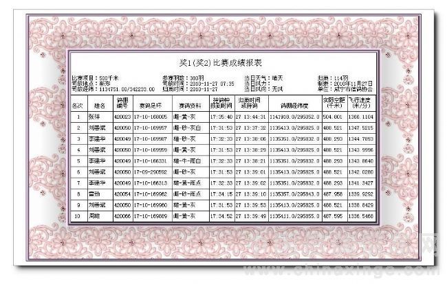 咸宁市信鸽协会2021年(秋) 五关赛综合成绩报告表